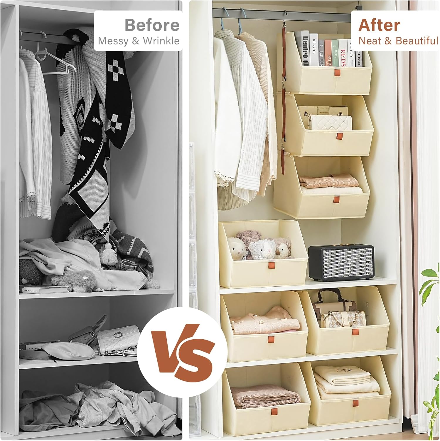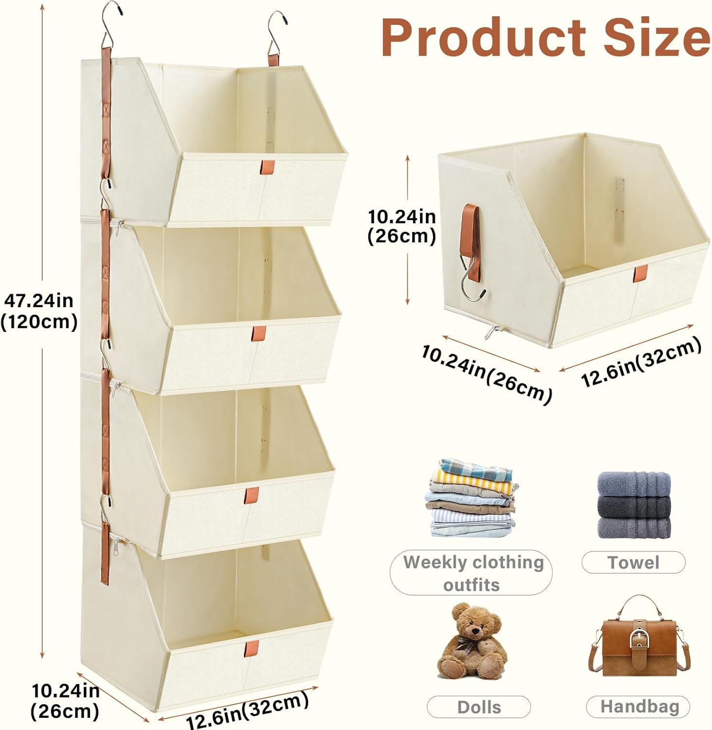 4 Tier Hanging Closet Organizer,Disassemblable Clothes Hanging Shelves,Fabric Closet Organizer System for Space-Saving,Foldable Storage Basket for Bedroom, Rv