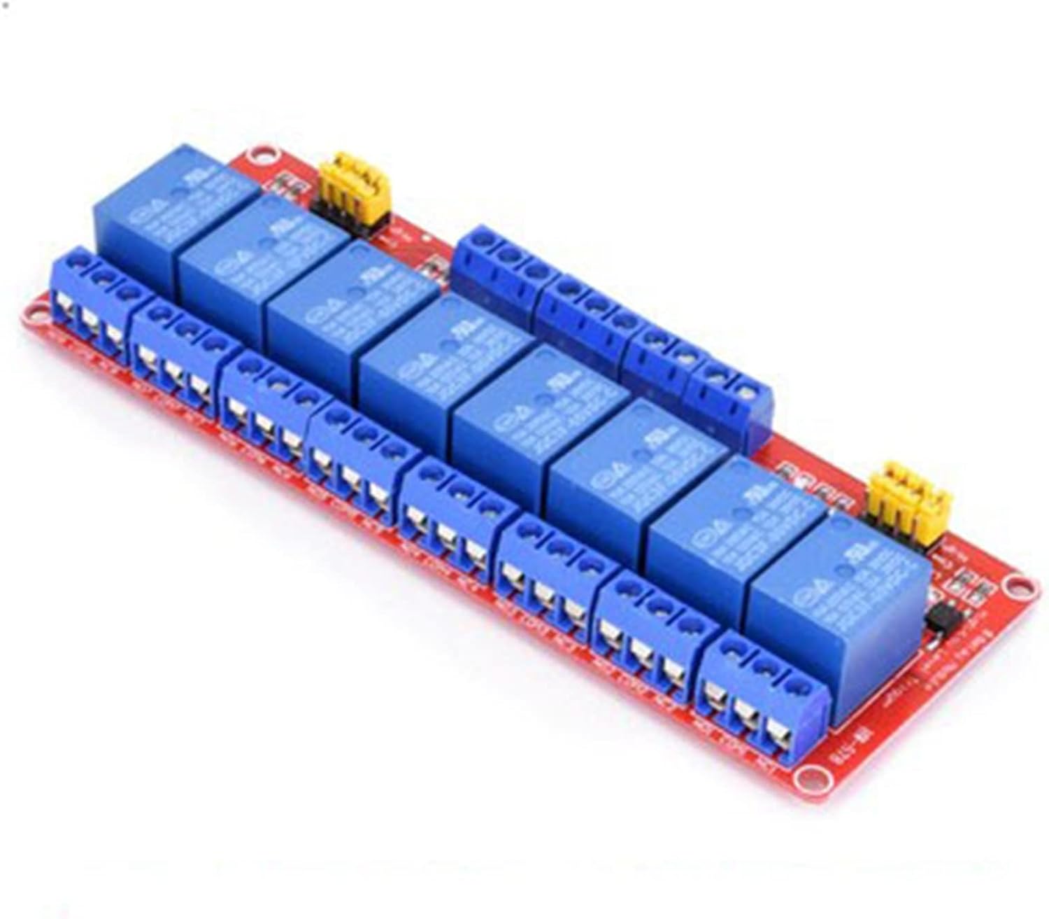 RelaysCircuit 50mm * 26mm * 18mmProduct size : 26mm*50mm2-way dimension drawing 50 * 41 * 17.5MM4-way dimension drawing 75 * 51 * 16.5 MM8-way dimension drawing 142 * 52 * 18 MMI. module description:1. The module adopts genuine high-quality relay, and the maximum load of normally open interface: AC 250V / 10A, DC 30V / 10A;2. Chip mounted optocoupler isolation is adopted, with strong driving ability and stable performance; Trigger current 5mA;3. The working voltage of the module is 5v12v2v4. The module can be triggered by setting high level or low level through jumper;5. Fault tolerant design, even if the control line is broken, the relay will not act;6. Power indicator (green), relay status indicator (red)7. The interface design is user-friendly, and all interfaces can be led out directly through the wiring terminal, which is very convenient8. There are 4 fixing bolt holes with a diameter of 3.1mmTwo module interface:1. DC +: connected to the positive pole of power supply (voltage according to relay requirements)2. DC -: connected to negative pole of power supply3. In: high or low level control relay can be appliedRelay output:1. No: normally open interface of relay. The relay is suspended before being pulled in, and is short circuited with com after being pulled in2. COM: relay common interface3. NC: normally closed interface of relay. The relay is short circuited with com before being pulled in and suspended after being pulled inHigh and low level trigger selection terminal:1. When the jumper is short circuited with low, it is triggered at low level;2. When the jumper is short circuited with high, it is triggered by high level.