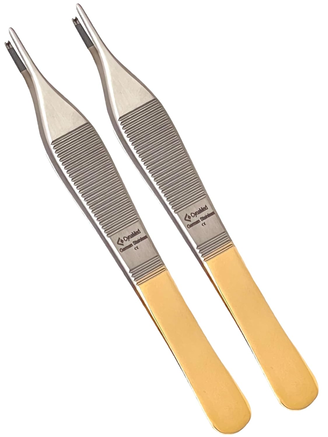 Veterinary, laboratory, dental, Adson Forceps 4.75" with Gold Handles and Tungsten Carbide Inserts. (Adson Brown Forceps, Adson Kocher Forceps, Adson Dressing Forceps)