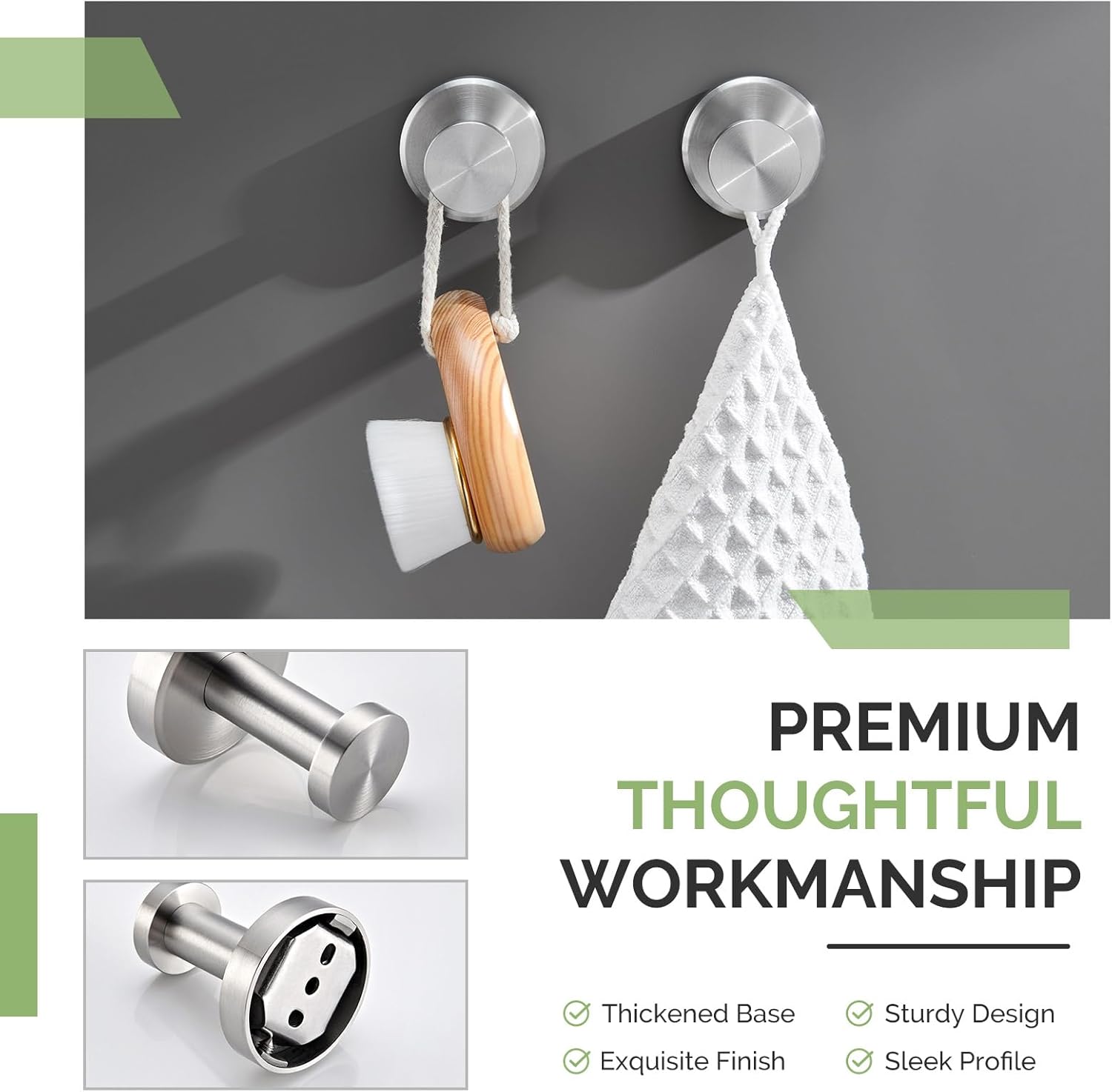 • FLEXIBLE TOWEL RING: an inconspicuous gasket is added inside the joint to prevent loosening and reduce abrasion, allow the ring swing back and forth soundlessly for easy hanging and grasping