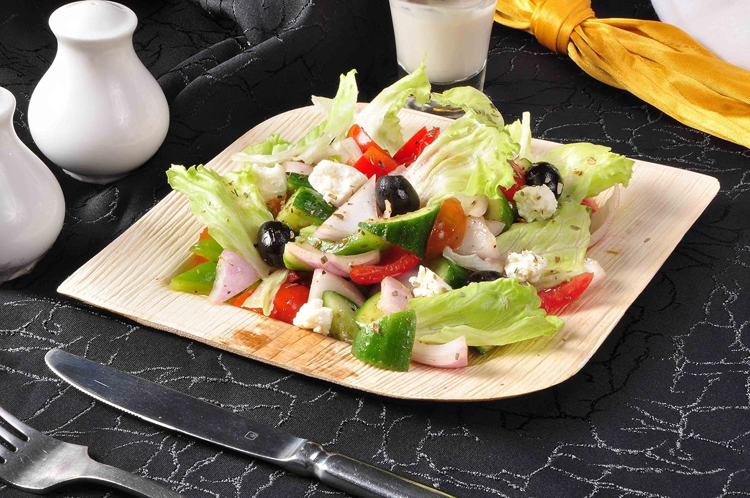 Serve your guests with soup appetizer salad main course dessert and much more in biodegradable and eco friendly designer palm leaf dinnerware Green Atmos disposable palm leaf plate is designed and made with natural fallen leaf without any chemicals coatings to required shapes and sizes without chopping the trees Green Atmos disposable areca palm leaf plates are microwave and refrigeration safe Green Atmos disposable palm leaf plate is a perfect alternate for plastics thermo foam paper based products and suitable for weddings, parties, picnics catering hotels etc Green Atmos disposable palm leaf plate are sturdy and strong as a ceramic porcelain plate to use fork & knife but light weight biodegradable and a eco friendly disposable