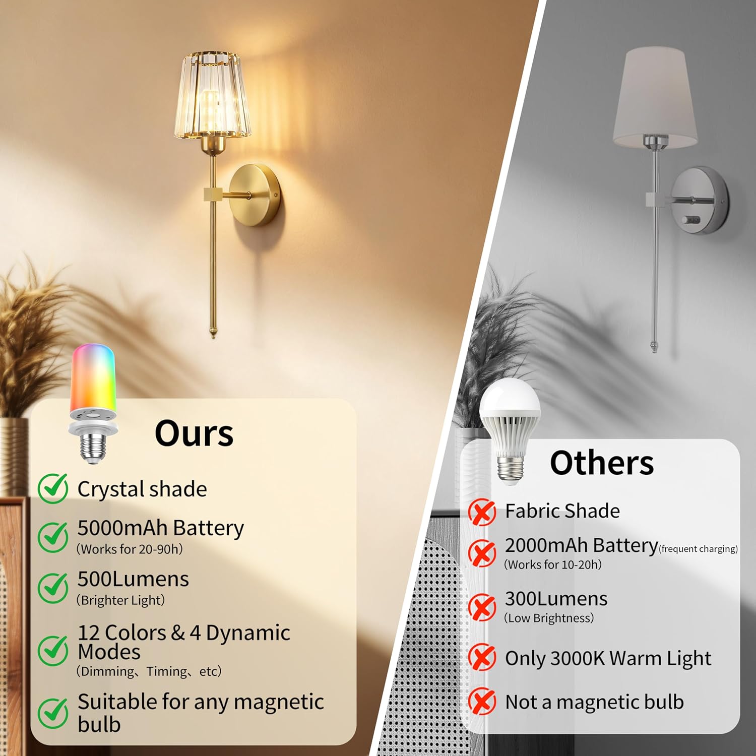 | Theme | No Wiring Required Crystal Wall Sconce with Rechargeable Bulb |