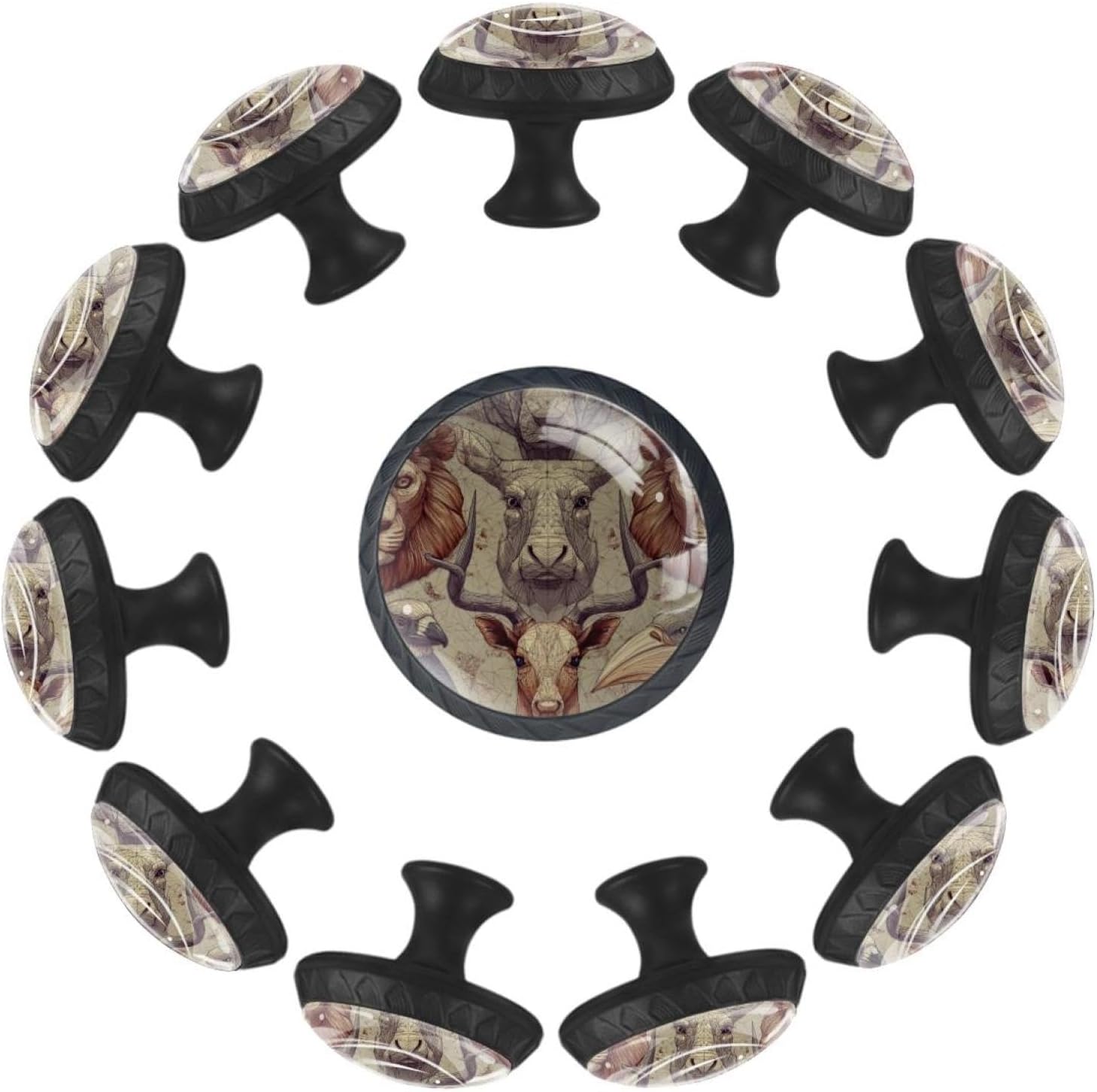 Upgrade your home decor with LORVIES Decorative Cabinet Knobs, Drawer Knobs, Cabinet Pulls & Drawer Pulls.Make them part of your home decor!These cabinet hardware & furniture knobs are the perfect size for your cabinets and drawers.The elegant and unique design, featuring diverse decorative patterns, adds a touch of sophistication to your cabinets.Not only are these kitchen cabinet knobs & bathroom drawer knobs functional, but they also elevate the style of any space.Whether it's your living room, kitchen, bedroom, or bathroom, these dresser knobs, wardrobe knobs & cupboard knobs are versatile and complement various decor styles. Product Information Material: ABS, Glass, Stainless Steel, Paper Size: 1.37" (Length) x 0.66" (Width) x 1.1" (Height) Weight: 0.28 Pounds / 0.13KG Base Color: Black Shape: Round with pattern edge Package Include: 12 x Cabinet knobs, 24 x Screws (Short x 12: 1.1" & Long x 12: 1.37") Notice ! ! ! Please measure and confirm the size of cabinet knobs & drawer knobs you need before purchasing. Please be careful when drilling holes. Manual measurements may be slightly inaccurate. Because of each computer display different colors may be related to physical and picture, hope to understand. LORVIES Service Provide you with a worry-free shopping, thank you! Any problems, please feel free to find up to us, we will try our best to help you solve your problems. Customer service time: Monday to Friday (9.00am-6:00pm) (GMT+8)(Due to the time difference, please allow us 24 business hours to get back to you. Thank you!)