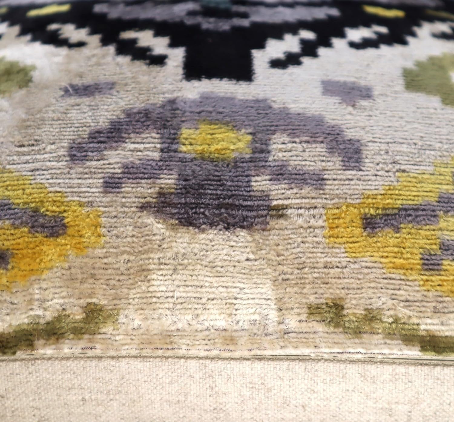 Transform your home into a haven of elegance and style with the Canvello Handmade Gray, Ivory, and Gold Velvet Decorative Throw Pillow. This luxurious 20x20 inch square pillow is a masterpiece of artisanal craftsmanship, featuring a naturally vegetable-dyed velvet fabric with a stunning geometric ikat pattern in gray, ivory, and gold tones. Designed to elevate any space, the pillow comes with a premium down feather insert that provides unmatched comfort and support. The hidden zipper closure ensures a seamless and polished look, while making it easy to remove the insert for cleaning. Perfect for sofas, beds, or as an accent piece in your favorite chair, this versatile throw pillow is ideal for modern, bohemian, and midcentury decor styles. Handmade with eco-conscious materials, it combines sustainability with durability to create a long-lasting piece for your home. Whether you're refreshing your living room, bedroom, or office, this Canvello decorative pillow is sure to become the focal point of any space. Enhance your home decor with this exquisite combination of style, comfort, and functionality.