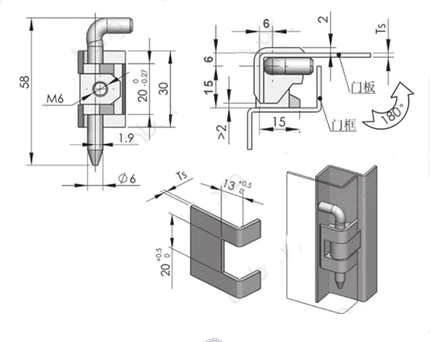 Latch【See the second picture of the variant for detailed parameters】【See the second picture of the variant for detailed parameters】CL230 Card Hinge Power Distribution Cabinet Control Box Iron Cabinet Hinge HL003-2 With Stud 1Pcs
