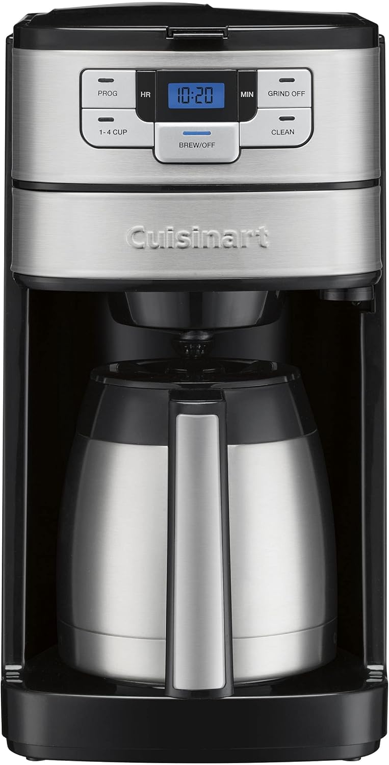 Leave it to Cuisinart to make delicious, freshly ground, freshly brewed coffee an even nicer experience. The Grind & Brew 12-Cup Coffeemaker features an innovative Direct Flow grind assembly that seamlessly moves coffee through the professional-style burr grinder right into the brew basket. An Auto Rinse feature makes sure all coffee grounds enter the brew basket to make clean-up exceptionally easy! Grinds just the amount of beans needed, to the number of cups selected. Intuitive controls offer three flavor strengths and a large display provides a clear view of customized selections. It's innovative coffee making technology -and Cuisinart - at their very best!. Features: 12-cup glass carafe with comfort-grip handle|Professional-style burr grinder for uniform consistency|DirectFlow grind assembly seamlessly dispenses grounds directly into the brew basket|AutoRinse ensures all the coffee grounds enter the brew basket|Half-pound bean hopper with sealed lid - keeps beans fresh|Flavor strength options – regular bold or extra-bold|Grind control – program for 4 to 12 cups|Grind-off feature lets you use pre-ground coffee|Extra-large LCD display and intuitive operation|24-hour brew start and adjustable auto shutoff|Gold-tone commercial-style permanent fi lter|Charcoal water fi lter removes impurities|Brew Pause™ feature lets you enjoy a cup before brewing is fi nished|Limited 3-Year Warranty. Note: Please refer the user manual below for trouble shooting guidelines/tips