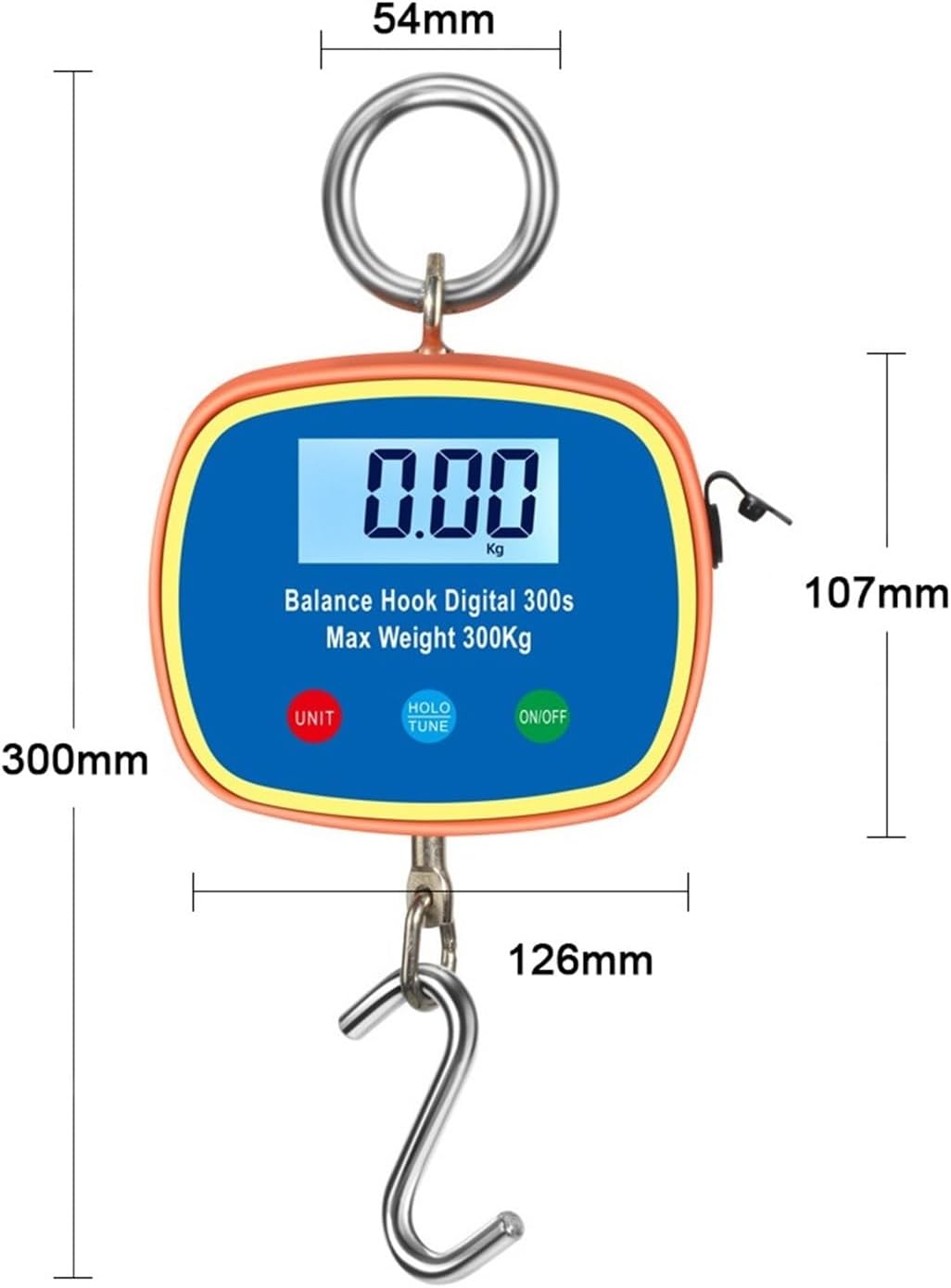 Small in size but with strong carrying capacity, it is designed to measure weights from 0.05kg to 300kg. Two large-font LCD screens with backlight make it easy to read data from both sides, and can clearly read data regardless of the distance or dark environment, which is convenient for buyers and sellers. 3 weighing units can be switched: Kg, LB, N can be converted to each other in a certain ratio. Multiple uses, easily switch according to your preferences. Built-in rechargeable large-capacity lithium battery, two power sources for charging and plugging, say goodbye to frequent power outages and delayed use. Wide range of applications, can be widely used in ports, transportation, metallurgical industry, steel market, building materials market, warehousing, coal, manufacturing industry, etc. Specifications:Name: ScaleMaterial: Plastic + SteelBattery: 1 * 4V, 800mAh battery (included)Display: Dual LCD with backlightCapacity: 0.05-300kgUnit: kg / lb / NProduct size: 300 * 126 * 35 mm / 11.81 * 4.96 * 1.38 inchesPacking List:1 * Scale