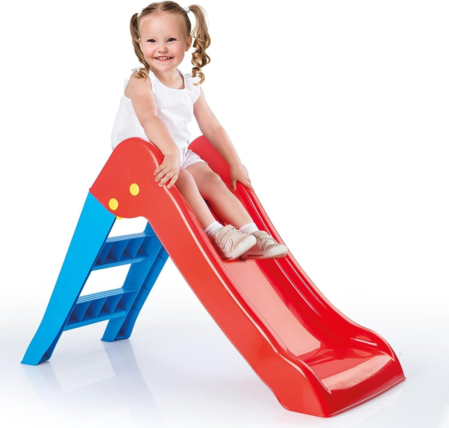 MY FIRST SLIDE: RED & BLUE - Introducing the Dolu My First Slide, a vibrant and dynamic addition to your child's playtime repertoire. Crafted with premium quality and designed for children aged 2 years and above, this slide promises endless hours of exhilarating fun and physical activity, both indoors and outdoors. With its striking combination of fire-engine red and bright blue, this slide not only captivates the imagination but also ensures safety and stability during play. 1 x Dolu My First Foldable Garden Slide in Red. From sunny afternoons in the backyard to rainy days indoors, the Dolu My First Slide is the perfect companion for active play and endless adventure. So, why wait? Add a splash of excitement to your child's playtime today with this versatile and vibrant slide. The slide also provides a great physical developmental point as they play and grow. Going up the steps and sliding down the slope will keep your little ones busy. Approximate Dimensions: 46.3" length x 19.1" width x 27.8" height.