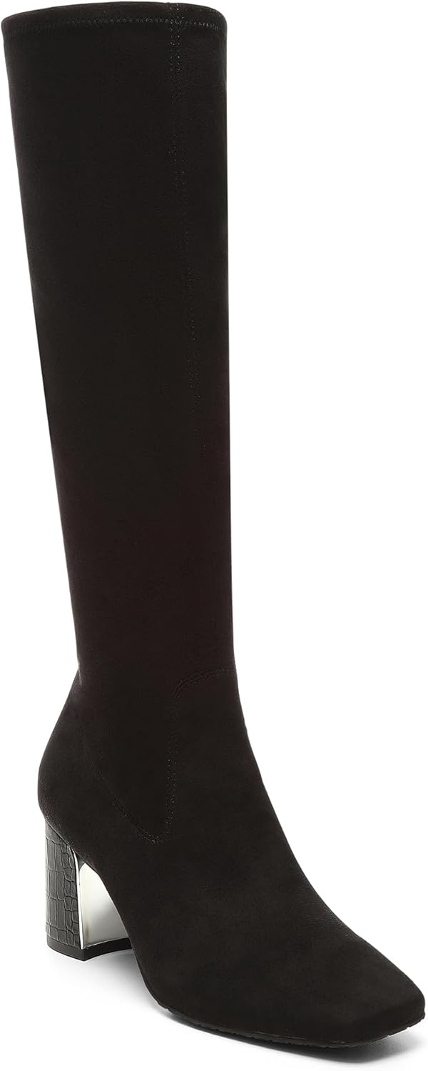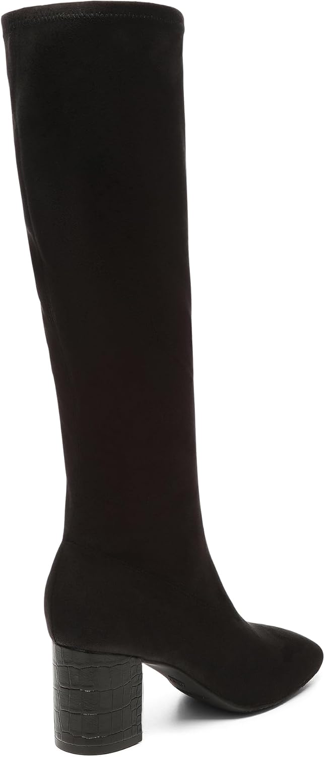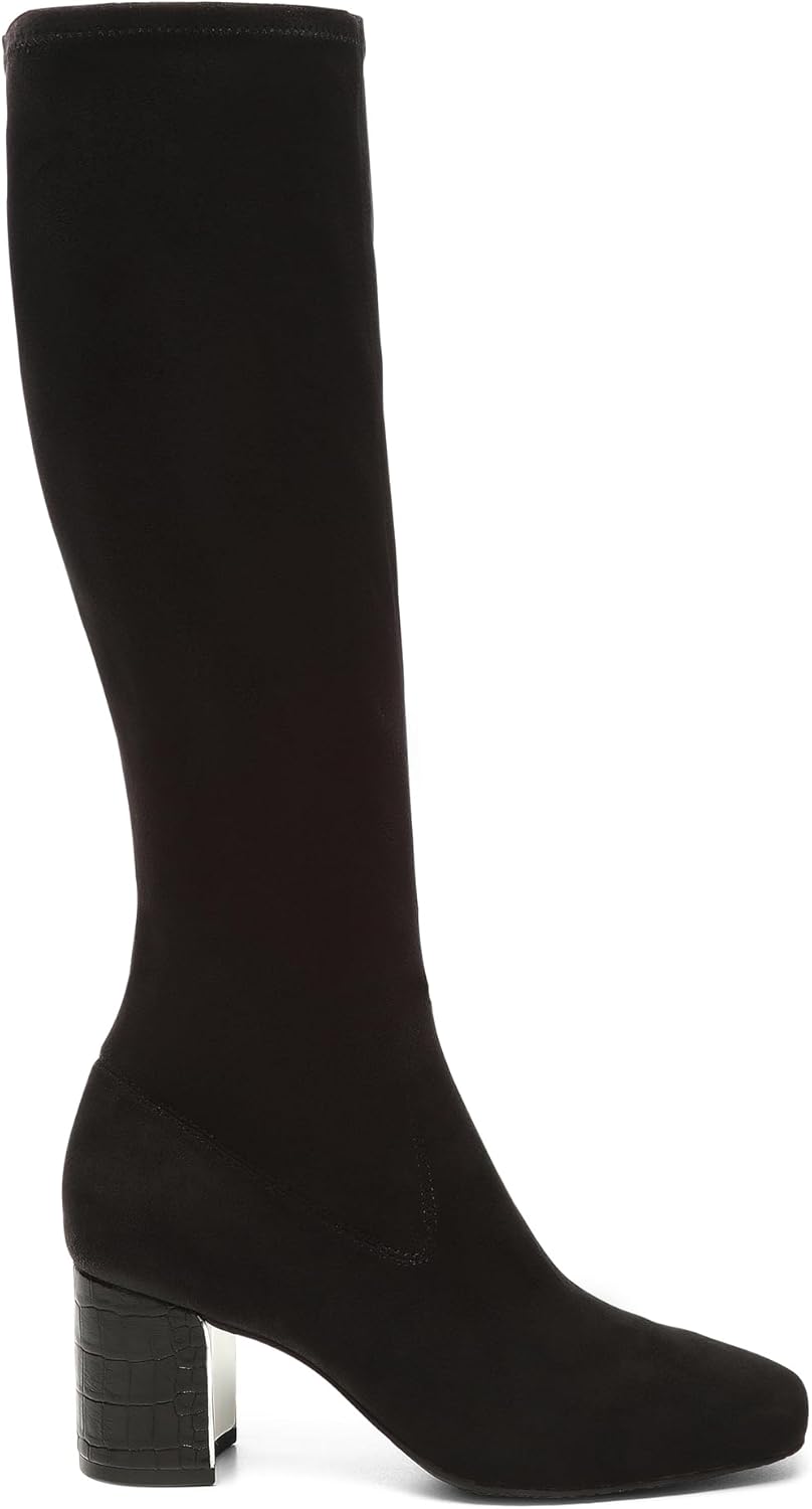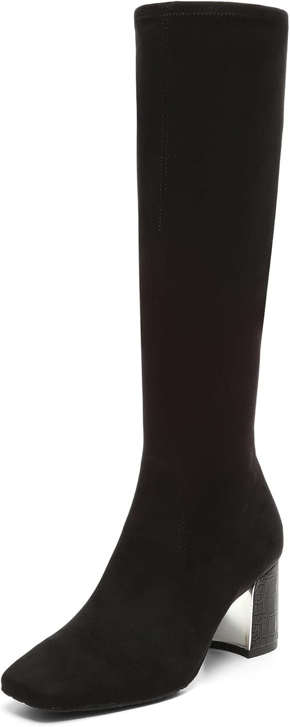 Elevate your fall and winter wardrobe with these stunning knee-high boots for women. These fashion boots , crafted with premium materials, conform to your leg, creating an ultra-sleek silhouette with a sock-like fit. The 2.5-inch block heel provides style and stability, while the 16-inch shaft elongates your leg for a flattering look. The extra padded lining ensures all-day comfort and confidence. Sophisticated and versatile, these snipped-toe block-heel boots are essential for your cold-weather shoe collection. They pair perfectly with jeans, skirts, and dresses, taking your outfit from day to night effortlessly. These zip-up boots, crafted with durable materials and impeccable attention to detail, showcase our brand's commitment to luxury footwear that combines style, comfort, and durability.