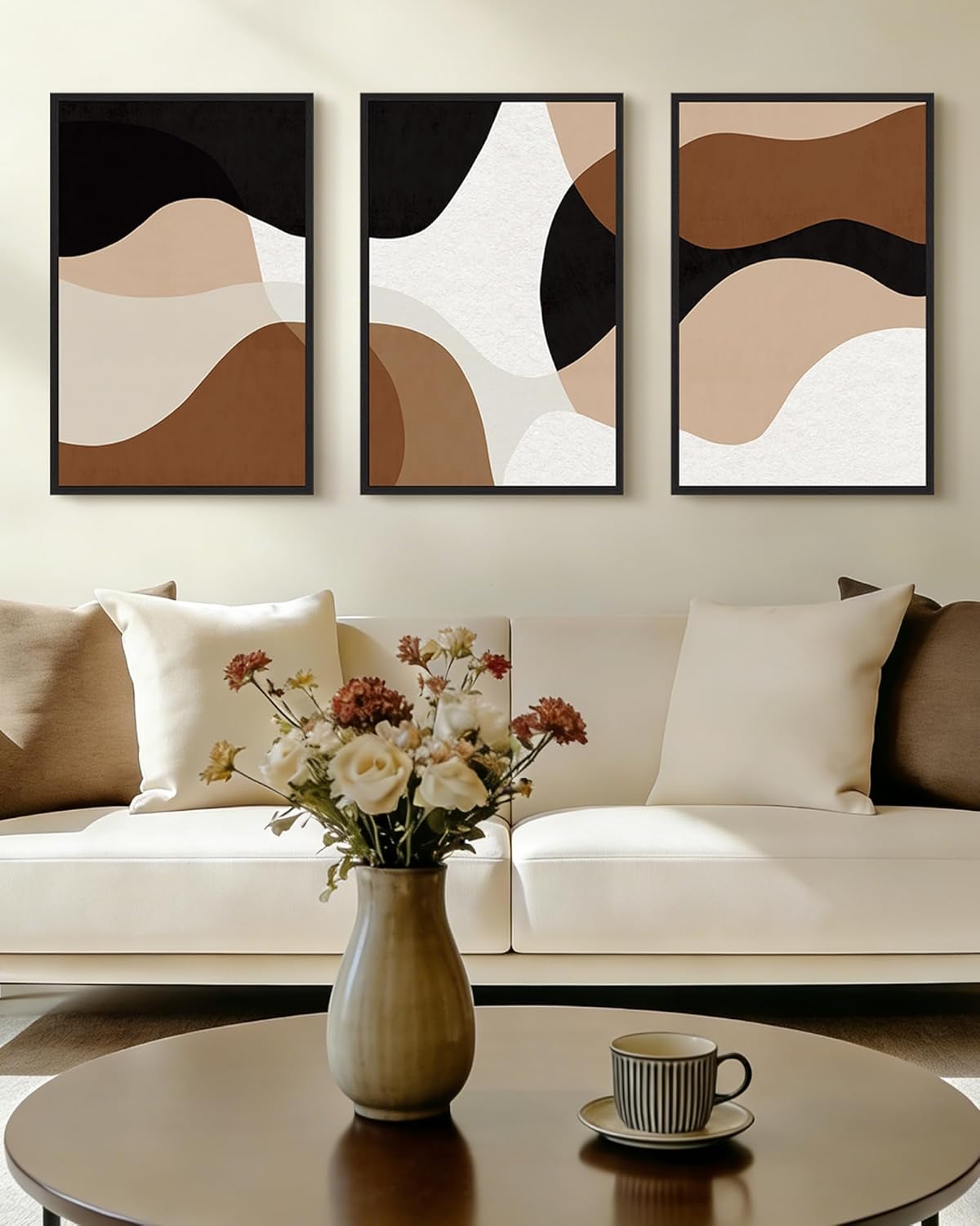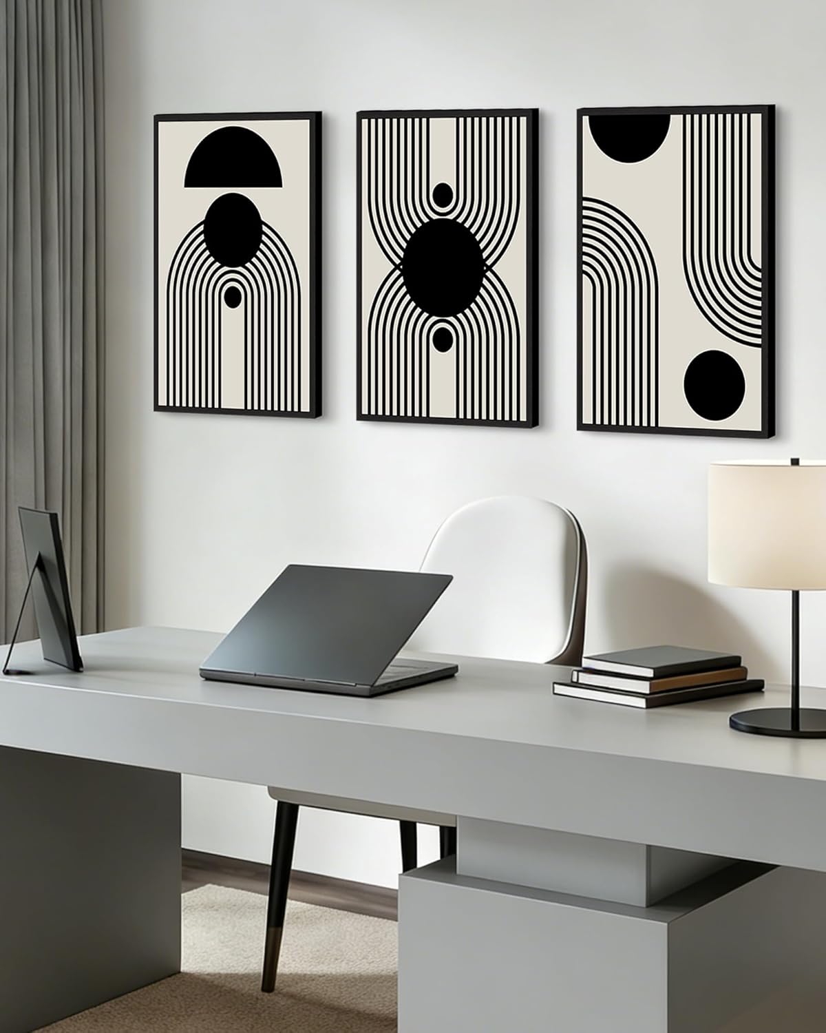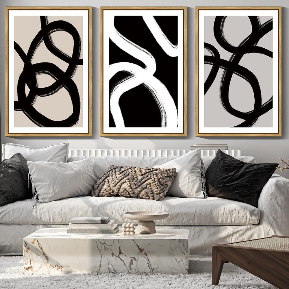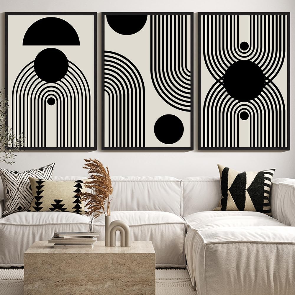 Boho Aesthetic - Enhance your home with this 3-piece black abstract bohemian wall art set. Perfectly designed for bedrooms, living rooms, and kitchens, these framed canvas prints add a chic minimalist and boho-inspired touch