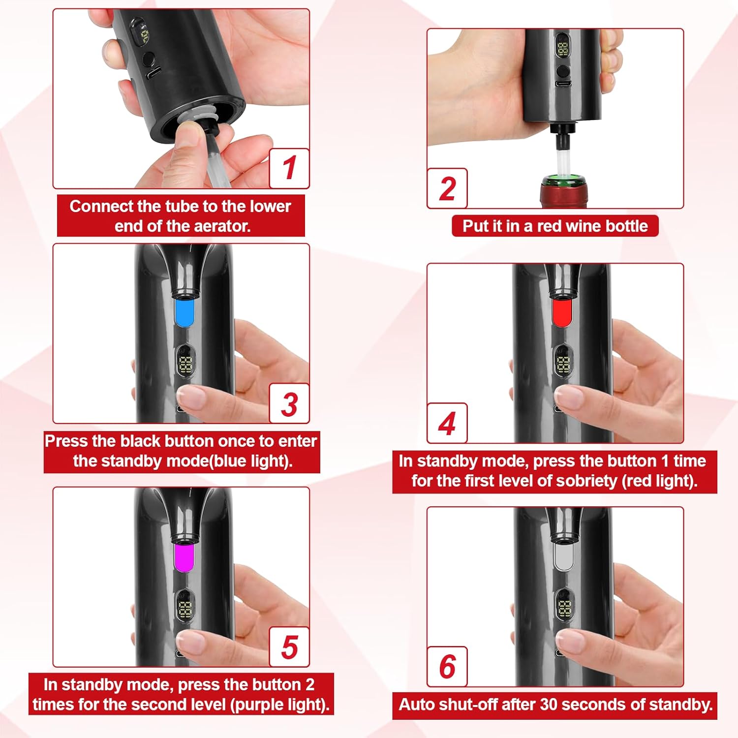 | Included Components | Electric Wine Aerator*1,User Manual*1,Type C Charge Cable*1,Flexible Tube*1, Waiter Corkscrew*1,Vacuum Wine Stopper*1,Packing Box*1 |