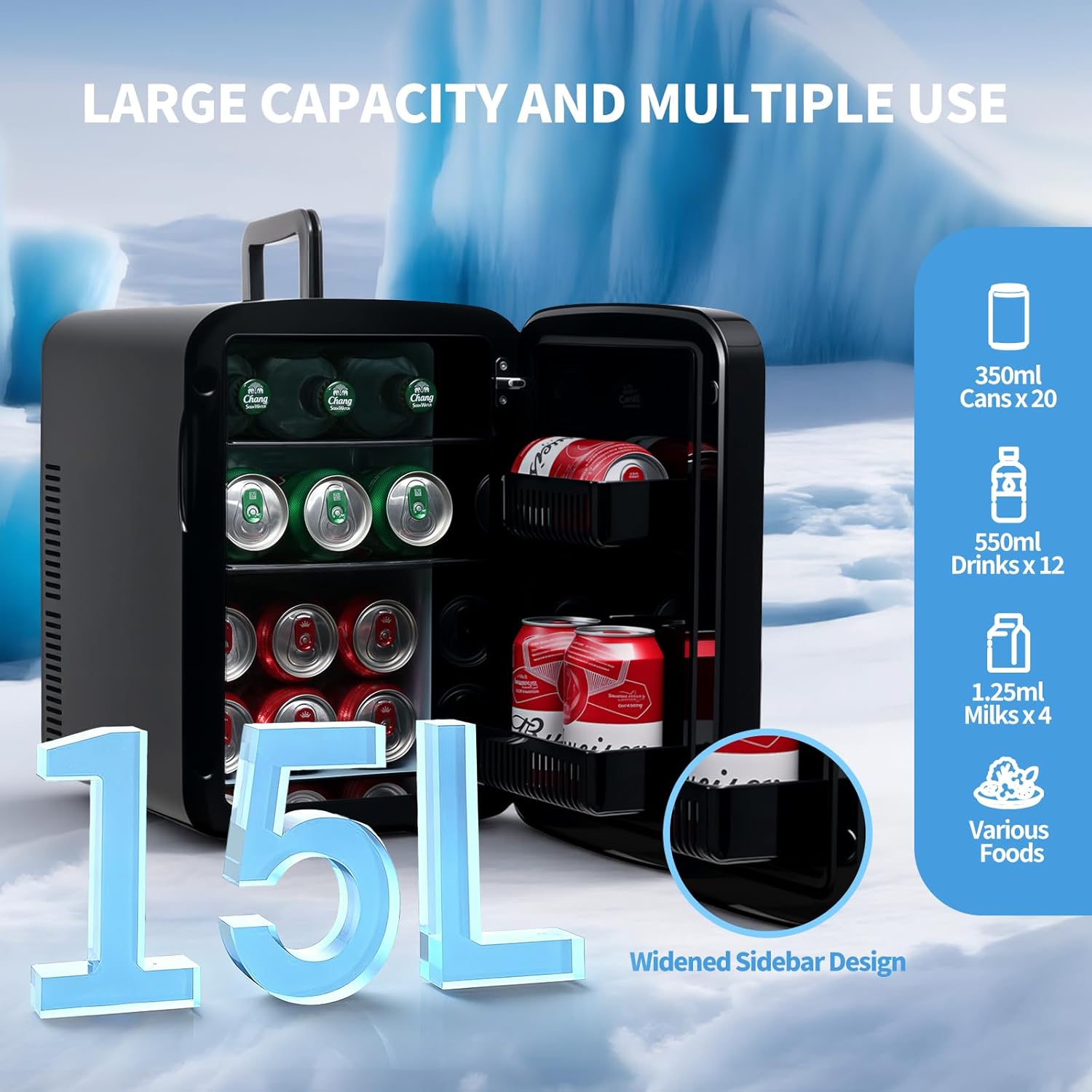 | Included Components | 1* 15L/20Can Mini Refrigerator Black, 1* AC Power Cords, 1* DC Power Cords |