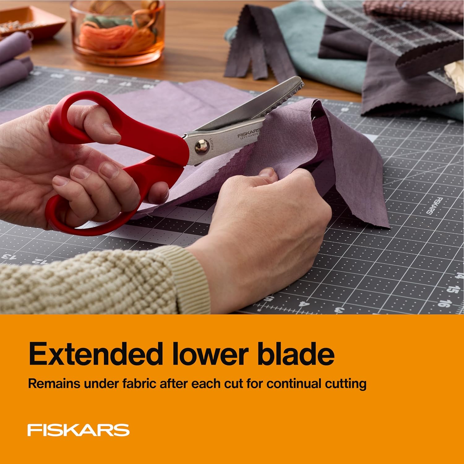 Fiskars® Premier Left-handed Pinking Shears help to elevate your creativity by providing unique design for cutting a zigzag edge that prevents fabric from unraveling. Generations of sewists, artists and makers have sought Fiskars® wide selection of premier sewing and crafting scissors when choosing their scissors. The pinking shears feature true left-handed blades that make cutting easy and effective for left-handed users while precision ground, stainless steel blades cut all the way to the tip. An ergonomically contoured handle fits the natural shape and movement of your hand while an extended lower blade makes continual cutting easier. For all of your fabric edging needs, cut with a legend.