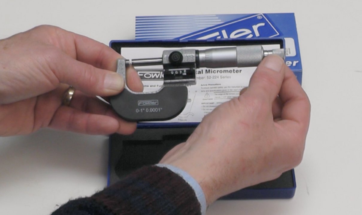 Fowler Digit Counter Micrometer has a choice of measuring range from 0 to 6 inches with a flat anvil/spindle pair with a 0.256-inch diameter measuring face for general purpose measuring. The digit counter reads to .001" while the vernier scale on the sleeve reads to .0001". The positive locking nut on spindle locks measurements in place when required and the zero adjustment on the sleeve ensures accurate measurements. The ratchet-stop thimble can be used independently of the friction thimble. It provides an audible sound and stops the spindle from turning when the spindle comes into contact with the workpiece, providing constant force for consistent measurements between operators. Micrometers are precision measuring instruments that use a calibrated screw to measure distances. These measurements are translated into large rotations of the screw that are then able to be read from a scale or a dial. Micrometers are typically used in manufacturing, machining, and mechanical engineering. There are three types of micrometers: outside, inside, and depth. Outside micrometers may also be called micrometer calipers and are used to measure the length, width, or outside diameter of an object. Inside micrometers are typically used to measure interior diameter, as in a hole. Depth micrometers measure the height, or depth, of any shape that has a step, groove, or slot. Fowler, an American company, manufactures premium inspection and measurement instruments like electronic indicators, calipers, bore gages, and micrometers. The company, founded in 1946, is headquartered in Canton, MA.