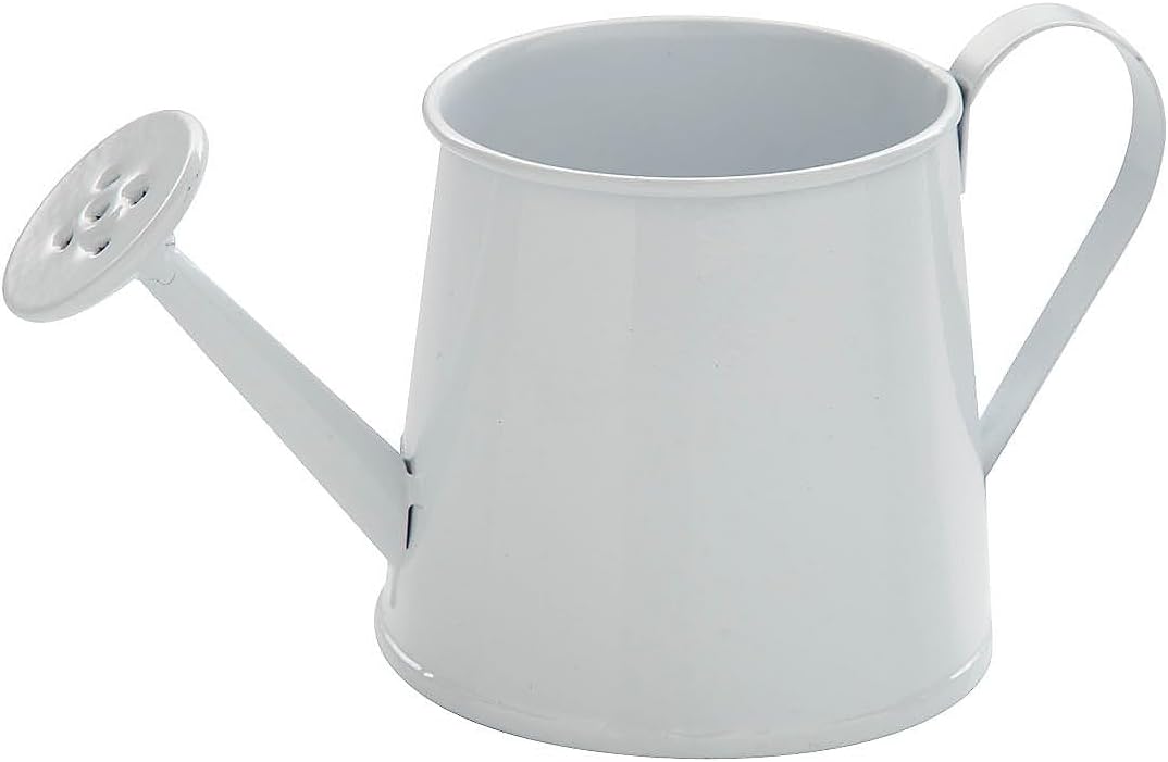 These watering cans are a charming piece that can be added to home decorations. At your next garden party or flower-themed event, hand out these mini tabletop decorations as party favors filled with wrapped candies or faux flowers (both sold separately on this site) and guests can take them home to add to their own decorative displays. Metal. 4 1/2" x 2 1/4"