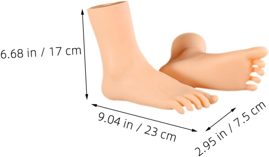 Package List 1 x Pair of Foot Models Features -Material:PVC vinyl foot sock form -Color:As Shown female socks mannequin -Size:23.00X17.00X7.50cm/9.04X6.68X2.95in -It is a versatile tool for painting, photography, display, teaching, and more mannequin feet. -The foot soft and elastic, providing a comfortable touch and feel sock display model. -Simulation foot model, made of skin-colored material and crafted with attention to detail sock display holder. -Its lightweight design make it easy to carry and transport. Very decorative and practical shoe stretcher. -This realistic and lifelike foot perfect for artists, educators, and anyone in need of a prop or teaching aid realistic feet.Goods Descriptionfake foot The craftsmanship and high simulation of the skin-colored material make your artwork more realistic.socks foot model The design of the foot lightweight and easy to carry, making it suitable for different artistic creation scenes.sock display model The soft and elastic foot made with process, providing a comfortable touch and convenience for your painting and creation.mannequin feet This foot a must-have for artists and enthusiasts