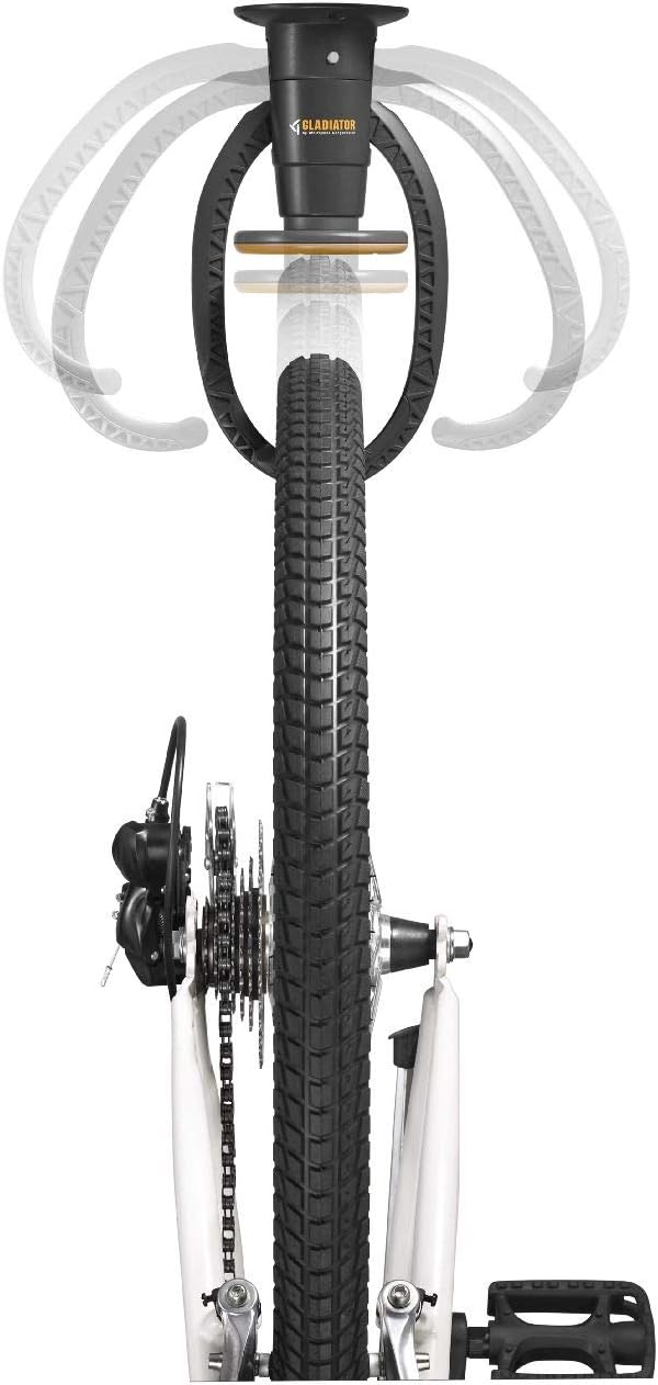 Product Description Bike storage is made easy with the Gladiator claw advanced bike storage V2. 0 that gives you convenient and flexible storage solutions for adult-and children-sized bicycles. More than your average bike hanger, This unit installs and repositions on your garage ceiling, making it easy to keep bikes off the floor but easily accessible. This unit’s push-lock mechanism allows homeowners to quickly hang and secure bikes without any hassle. From the Manufacturer With its unique Push-Lock mechanism, the Gladiator Claw™ Advanced Bike Storage v2.0 provides the shortest distance between “grab” and “go”. All it takes is one simple motion to hang or release your bike. The sturdy plastic arms can hold both adult and kid-size rides, keeping them up off the ground and ready for your next spin.