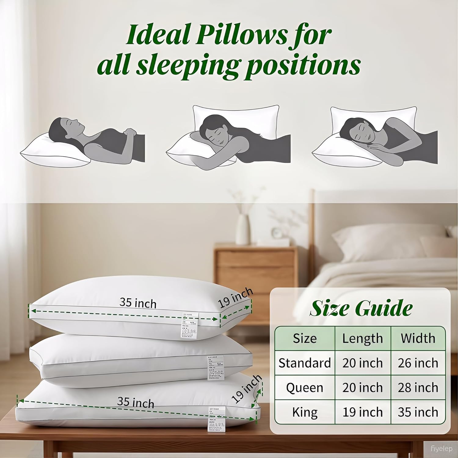 • 【3-Minute Fluff, Zero 24-Hour Wait: Instant Gratification for the Impatient Sleeper】We know the pain of ordering hotel pillows online—they arrive vacuum-sealed like pancakes. Our pre-expanded down pillow fill is designed for instant living. Rip open your pillows Queen/King/Standard size, give them two gentle pats, and within 3 minutes, they puff up to that plush, lofty shape. No waiting overnight. These bed pillows deliver that luxurious feather pillows feel without the hassle. Finally, soft pillows for sleeping that respect your impatience. Perfect as a mellow sleep pillow that's ready when you are