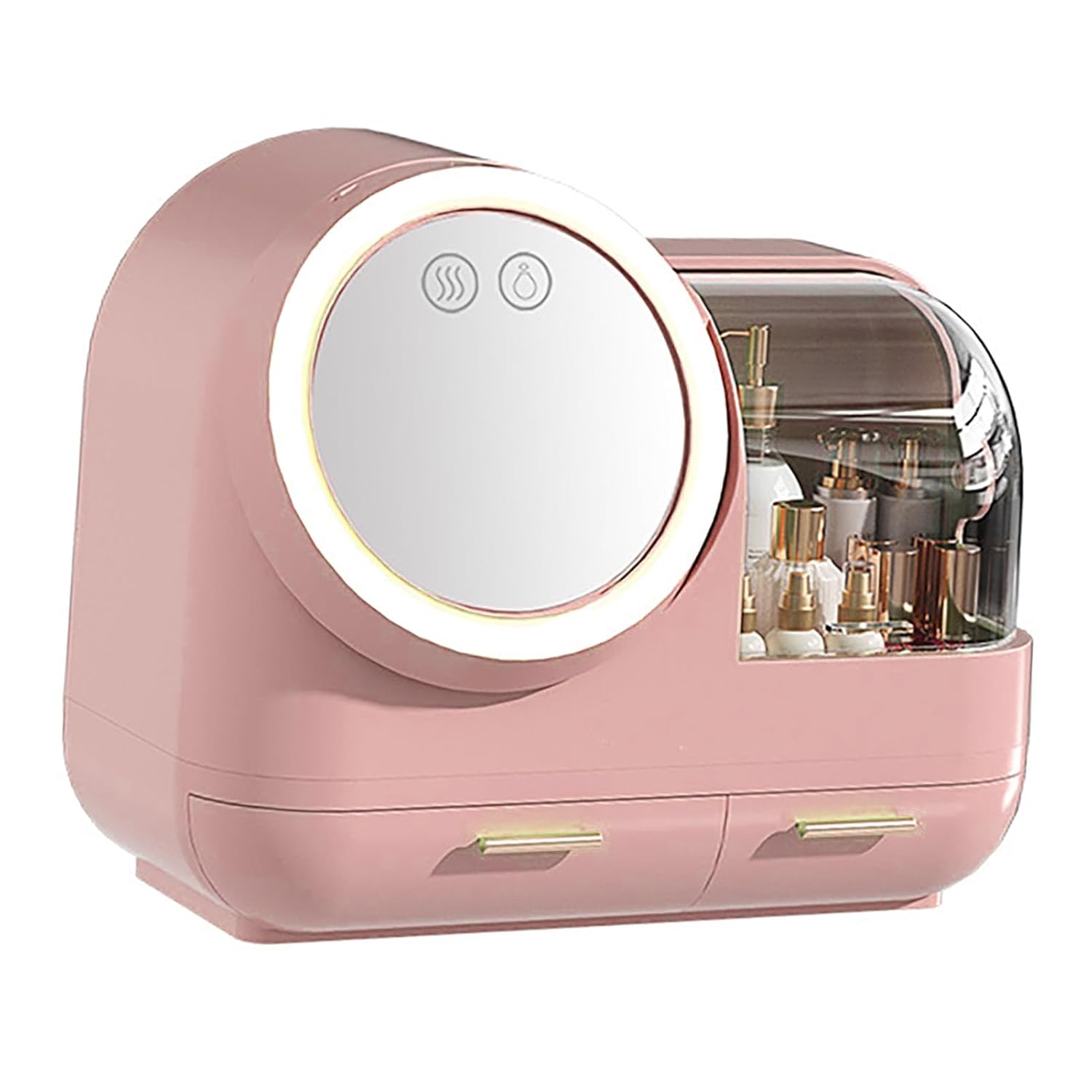 Spec:Item Type: Mirror Fan Makeup CaseMaterial: ABS plasticSize: Approx. 43 x 35 x 25cm / 16.93 x 13.78 x 9.84inApplication: Organize and store makeupBattery: Lithium battery, 2000mah (shipped with built in battery)PackageList:1 x Mirror Fan Makeup Case