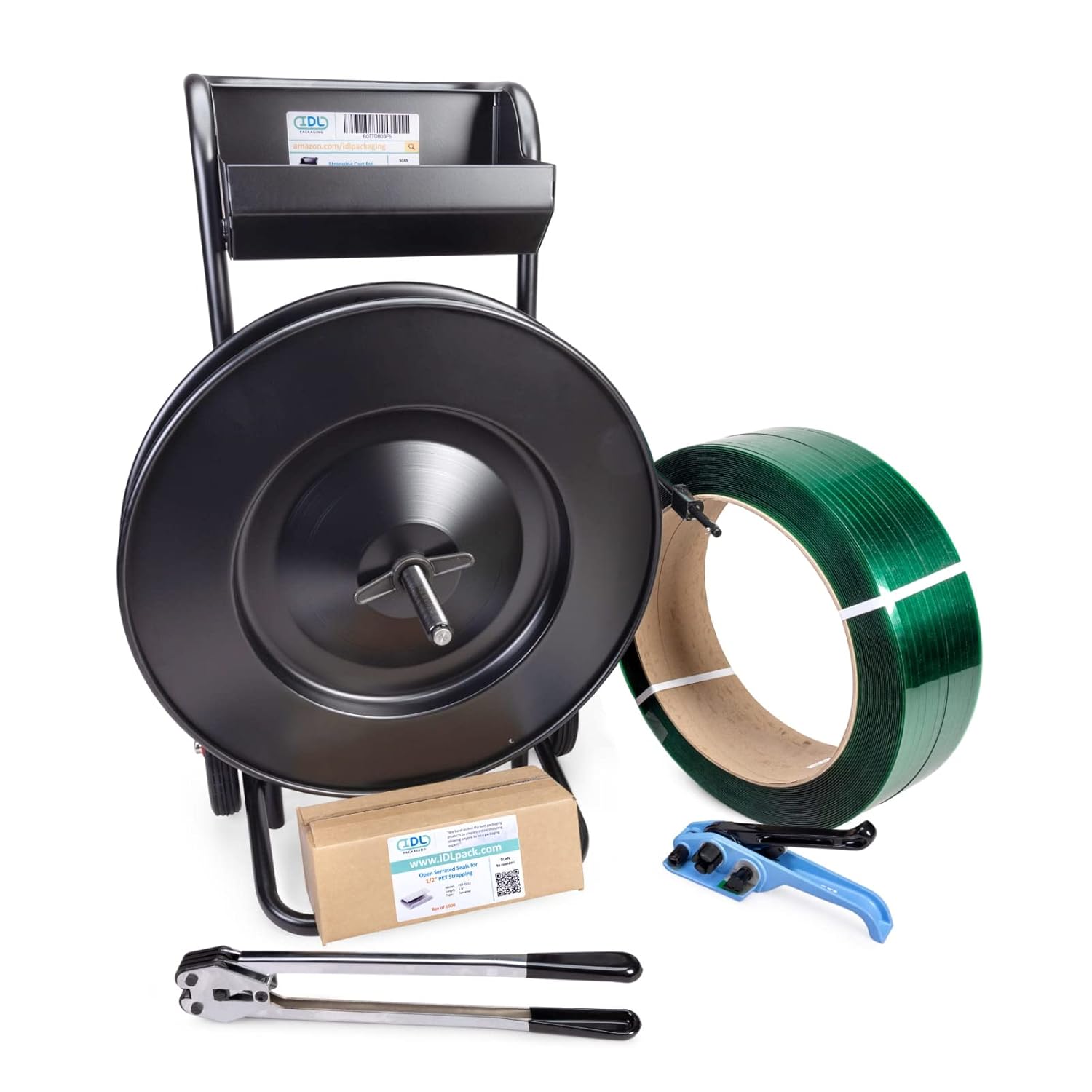 The Universal Polyester (PET) Strapping Kits Refill includes 1 coil of black 1/2 inch x 200 feet polyester (PET) strapping with 760 lbs break strength in self-dispensed cardboard box and a pack of 100 1/2-inch open serrated seals.It is mostly intended to replenish consumables in our 1/2-inch PET banding strapping kits that you can find at our IDL Packaging Amazon Brand Store. If you do not have the strapping tools yet, purchase one of our complete polyester strapping kits. We offer different packaging strapping solutions that include pre-picked strapping products that work perfectly together.On the other hand, if you already have all the necessary strapping tools, this set can be used to replenish stocks of your packing material.Polyester strapping is great for medium or high holding strength strapping (banding) when flexible and adaptable packaging is needed. The excellent elongation and memory retention characteristics can absorb impact without breaking or losing its ability to retain the load.The Open Serrated Seals are designed for smooth polyester strapping to keep the seal from losing its grip on the strapping, preventing slippage and loss of tension. Sturdy metal seals provide long-lasting fastening in harsh environments.At our IDL Packaging Amazon Brand Store, you can find a wide variety of strapping solutions for efficient and quick strapping of any volume, weight, and shape of the packaging.