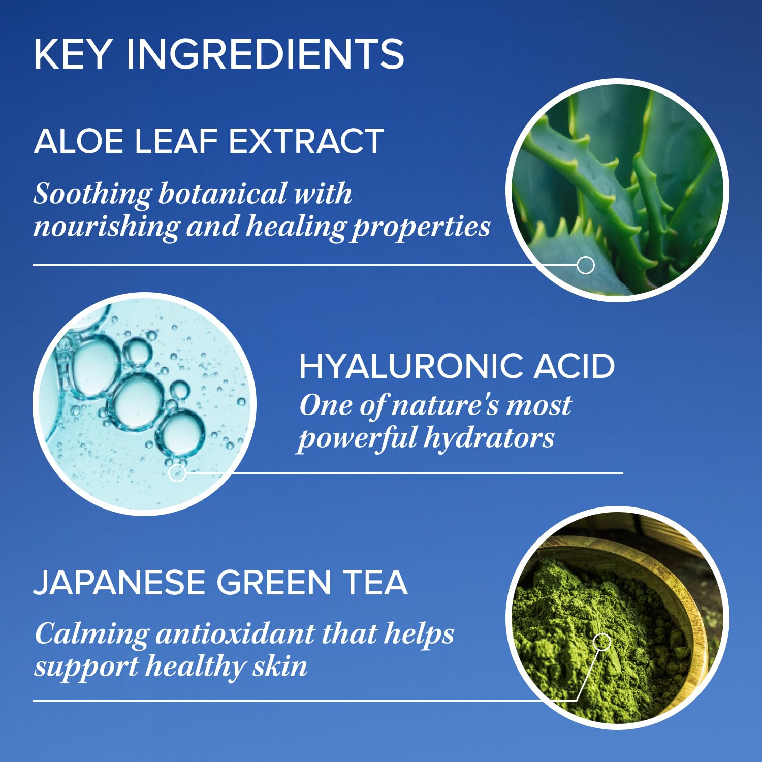 | Product Benefits | Hydrates and soothes compromised skin. Formulated with Hyaluronic Acid leaving skin luminous, fresh and invigorated |