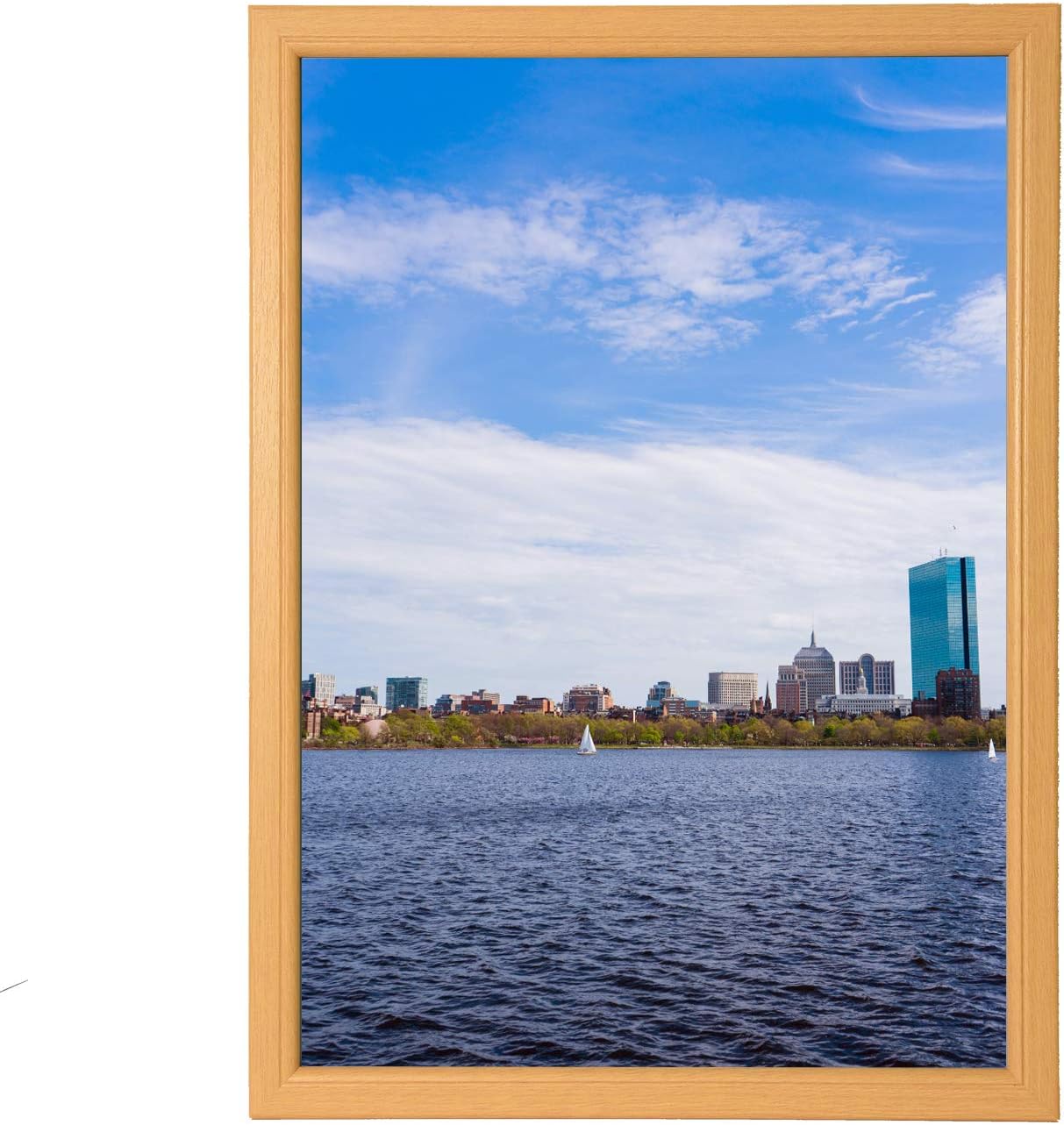 The front plate is made of lightweight and safe PET material. It does not damage like glass, so it can be used safely in homes with earthquakes or small children. Front and back of the front plate have 2-way specifications: non-reflective/gloss. It represents a glossy surface when you want to see photos clearly, and a non-reflective surface when you want to reduce reflections. Wooden A2 size without mat Color: Natural Front plate: transparent PET board (thickness 0.04 inch (1.0 mm)). Comes with a hanging strap. Frame Outer Dimensions: W 18.3 x H 25.2 inches (464 x 638 mm) Frame Inner Dimensions: W 15.9 x H 22.8 inches (406 x 580 mm) Weight: 800g