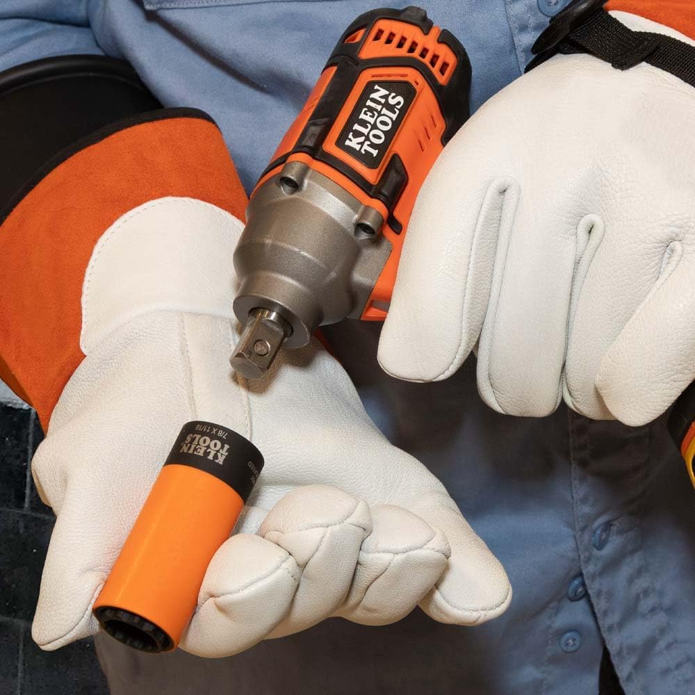 Klein's 6-Piece Coated Socket Set consisting of the commonly used impact socket sizes for utility and construction work. Sockets are 20-Percent lighter than the traditional impact socket set (Cat. No. 66010). The high-torque, 12-Point design is easier to position on fasteners including square ones. The high visibility color coded plastic helps identify the right size socket for the job. For more than 160 years, Klein Tools has manufactured premium-quality, professional-grade hand tools that deliver the performance, durability and precision needed to get the job done right. Our family of engineers, workers and craftsman continue to put six generations of expertise into every tool we create by using only the highest quality materials, superior workmanship, and keeping manufacturing as close to home as we can. Klein isn't just the name of our company, it's also our family name. And since we're an American company that's family-owned and family-run, you know you can count on us to be here tomorrow. Klein Tools doesn't just make great products, we make great products that stand up to the demands of the professionals who use them every day ... Since 1857.