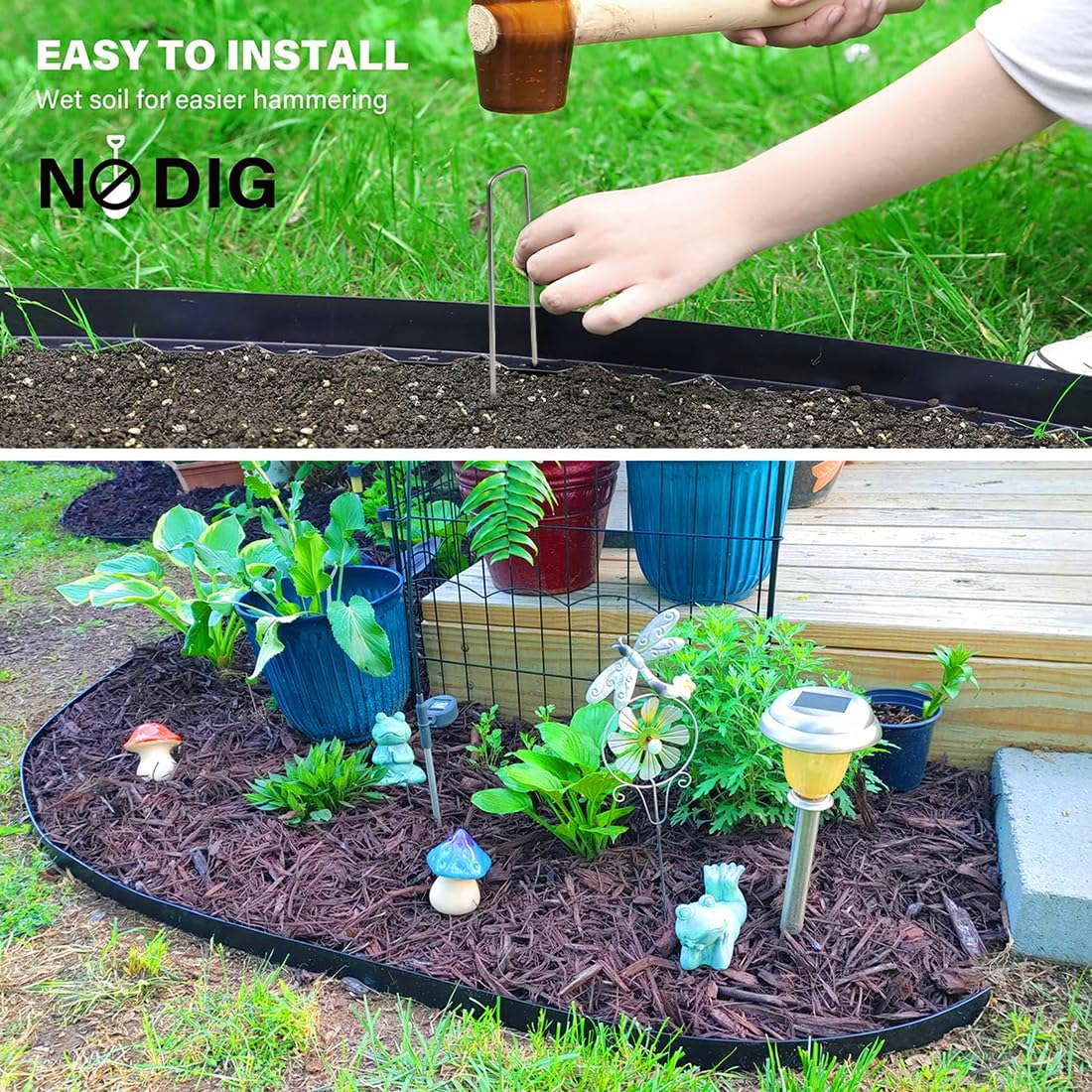 Landscape Edging 3 IN x 66 FT, Garden Edging Borders with 100 Pieces Metal Stakes, Flexible Lawn Edging Border Kit, DIY Plastic Fence Edge for Tree, Yard, Flowerbeds,Grass,Landscaping, Path way