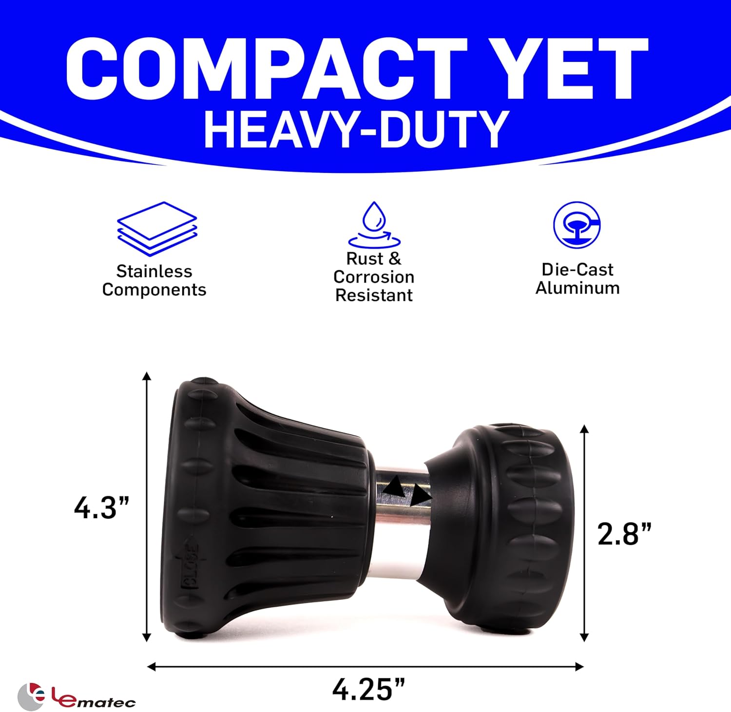 The LE LEMATEC adjustable garden hose nozzle sprayer delivers professional-grade results for all your outdoor tasks. This heavy duty spray nozzle for garden hose, features leak-proof brass construction and adjustable patterns from gentle cone to powerful jet stream. The ergonomic grip makes it comfortable for extended use, whether you're watering delicate plants or tackling tough cleaning jobs. With its durable design and versatile spray settings, this garden sprayer hose nozzle turns any standard water hose into a reliable tool.