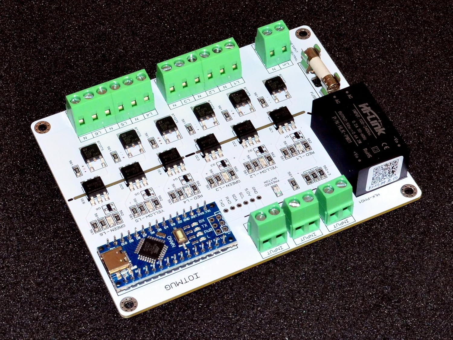 USER NEEDS TO KNOW BASIC PROGRAMMING LANGUAGEALL MANUALS IN DESCRIPTION AND PRODUCT BULLTES AREA. PLEASE SEE LINKS BEFORE YOU BUY 6CH Light Controller, programmable board Our 6 Channel Light Controller is the perfect solution for all of your signal needs. Accepting standard 120VAC and 240VAC line voltage, this controller provides 500 Watts per channel and will drive full-sized LED and incandescent lights (this includes all household incandescent and LED bulbs). This board is based with the latest solid state relays. Solid state relays technology means quiet, effortless switching for many years. Now is very simple programming all traffic lights timings. This board is Compatible With Arduino software. 6 channel light controller is compatible with Arduino Uno bootloader with ATMEGA328P microcontroller. USB-UART bridge is based on popular CH340G chip. It’s very help to user in programming all three lights timing. This board is already programmed with simple lights demo code. Also, all others demo codes are provided below. What need user to start working with this board? 1.Download and install CH340G USB driver 2.Download and install Required programming software from webpage 3.Connect device to the computer via usb cable 4.And upload demo or user written sketches to the board Device specification: PCB board dimension – 100mm x 100mm , color green PCB Board Material - 1.6 mm FR-4, with solder mask & silk screen Input Connector - 14-26AWG, 250VAC @ 16A screw terminals Output Connectors - 14-26AWG, 250VAC @ 16A screw terminals Safety fuse - 8A For more information/resources, please contact with us via amazon messaging system.