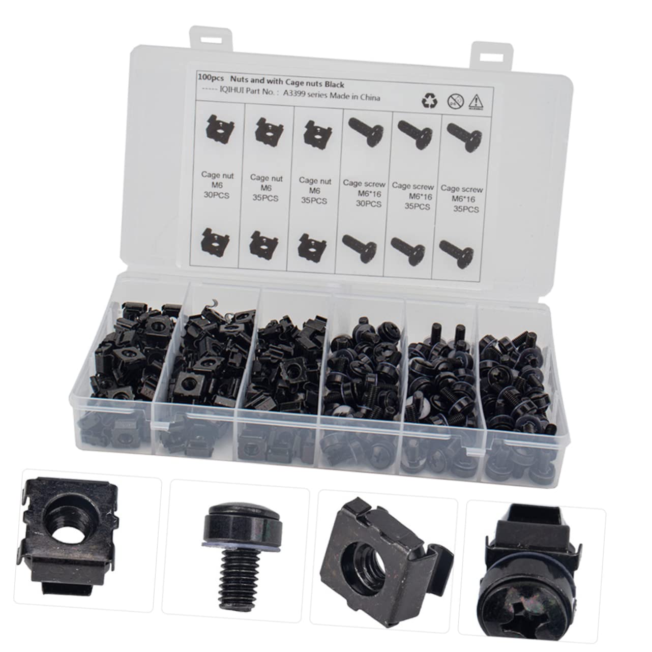 Package Include 1 x set of Mount Cage Nut Screws Washers Features -Size:1.60X1.20X1.20cm/0.63X0.47X0.47in mounting nuts -Material:Carbon steel nuts bolts washers assortment -Product Info:Cabinet screw combination -Color:Black metal screws and nuts - Enough quantities, so these cage nut sets can meet your different needs, and has a wide application Square Hole Hardware. - Smooth surface and no burrs, great workmanship, the cage nut set is sturdy and to use washers for screws. - workmanship, reasonable structure, professional and practical, can bring you convenience mount screws and cage nuts. - Easily mount your equipment using this convenient kit, which comes with everything you'll need to get the done Mounting Cage Nuts. - This cage nuts sets are very easy to install and simple to operate, giving you huge convenience Screws for Rack Mount.Goods Descriptionelectrical panel screws for both indoor and outdoor use superior corrosion resistance to regular steel.mount screws and cage nuts These cage nut sets are made of carbon steel, which is one of the forms of metals, making it last longer than other nuts on the market today.rack screws and cage nuts These cage nut sets greatly reduce loosening under vibrations and torque