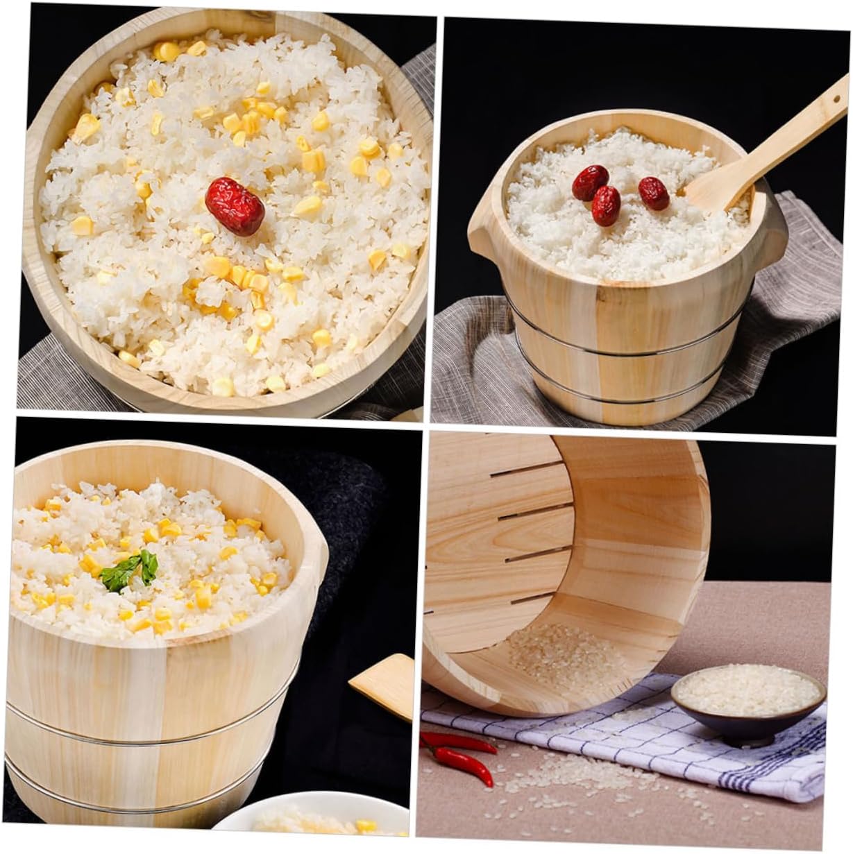 Package Include 1 x Rice Bucket 1 x Lid Features -Color:Beige rice bucket -Material:Wood multi-function rice bucket -Size:21.00X21.00X20.00cm/8.25X8.25X7.86in rice container with lid -The rice steamed bucket is a food storage bucket for families, parties, restaurants, catering, etc wooden storage containers. -The workmanship of this rice steamed bucket is perfect, and you will have a good experience in using it wooden storage bucket. -Polished by hand, smooth surface without burr, feel comfortable. The steamed rice will cook evenly and won't burn using this natural barrel household rice container. -The rice steamed bucket is made of , which means is and Cask meal. -Lightweight and compact, it you more space and not take up much cooking bucket.Goods Informationbucket with can be wonderfully used as a food display bucket, which will increase your appetite greatly.container with cover This Rice Bucket is made of material, which can be used for a long time.kitchen supply manufacture makes the surface smooth, and rice bucket is easy to clean with water