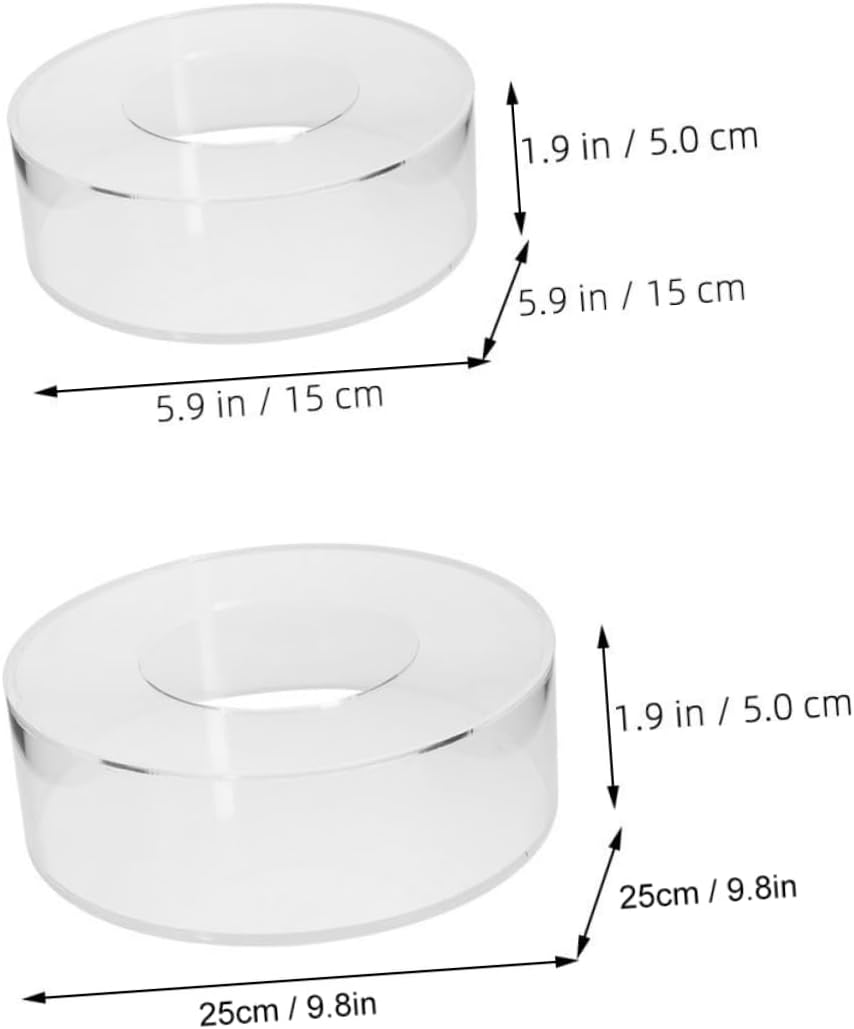 Package List 1 x Acrylic Fillable Cake Stand (25cm) 1 x Acrylic Fillable Cake Stand (15cm) Characteristics - Size: 20.00X20.00X5.00cm/7.86X7.86X1.97in cake display stand - Size: 15.00X15.00X5.00cm/5.89X5.89X1.97in dessert table stands -Material:Acrylic clear display stand -Color:Transparent fillable cake stand clear - A perfect cupcake and cake stand for wedding, engagement, tea party, banquet, birthday, Christmas, etc round cupcake display riser. - The simple and elegant design of the cake serving stand is attractive and decorative. The cake stand is very useful Wedding Party Cake Stands. - Can be used to place and display cakes, cupcakes, macarons, snacks, and other foods round risers display stands. - Full of , easily winning your favors. Add a birthday party or family gathering vibe Dessert Display Rack. - The acrylic material is safe and light, which is wear resistance and practical for the lasting time use Dessert Display Stand.Goods Informationparty cake holder Excellent workmanship, give maximum attention to every detail to give it a simple and chic look.transparent cake tier Easy to use, can stably stand on table, so convenient to use.Fillable Cupcake Display Rack Used as cake stand, provides enough capacity for holding and display your desserts
