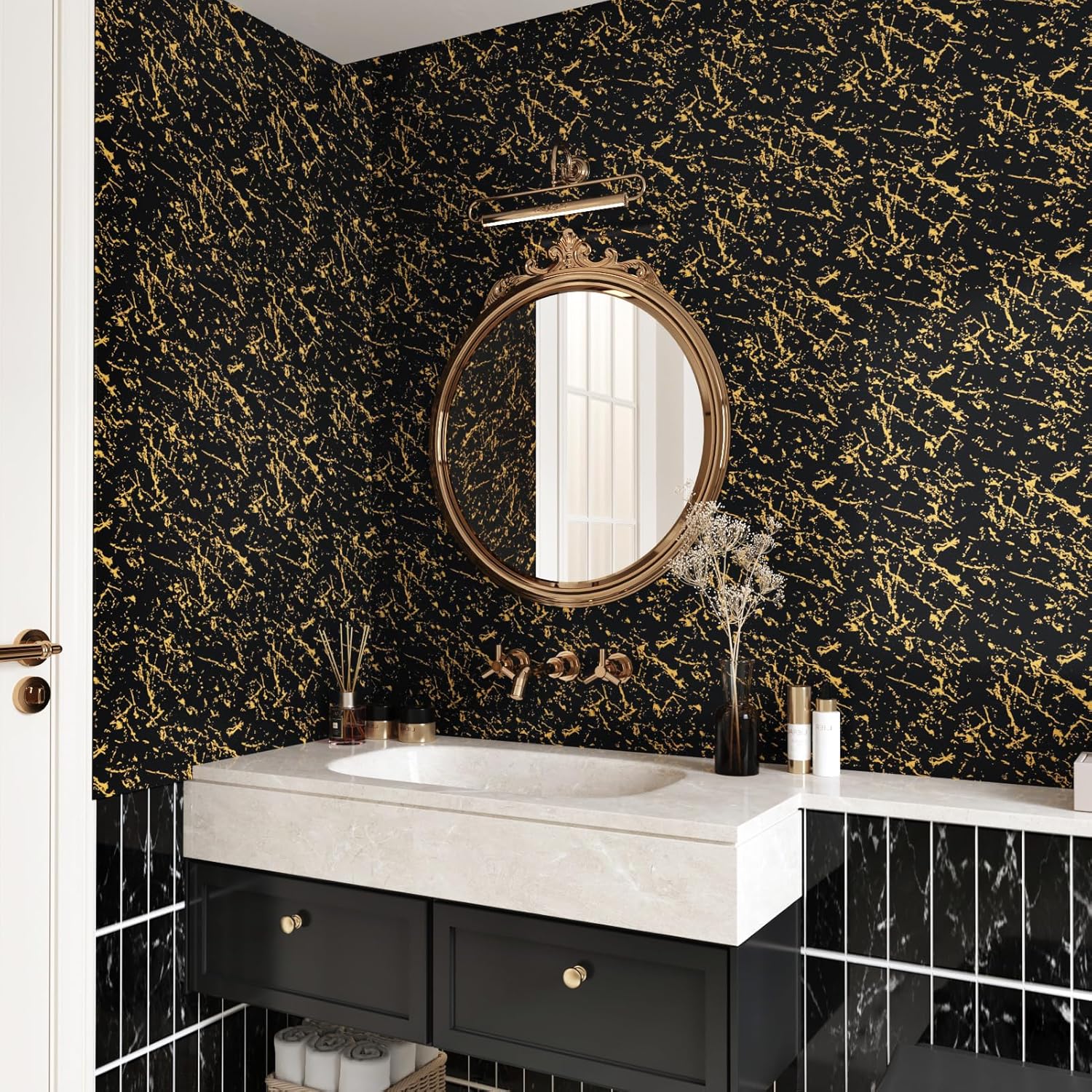 | Style | Black Marble Wallpaper for Bathroom , Kithchen , Countertops |