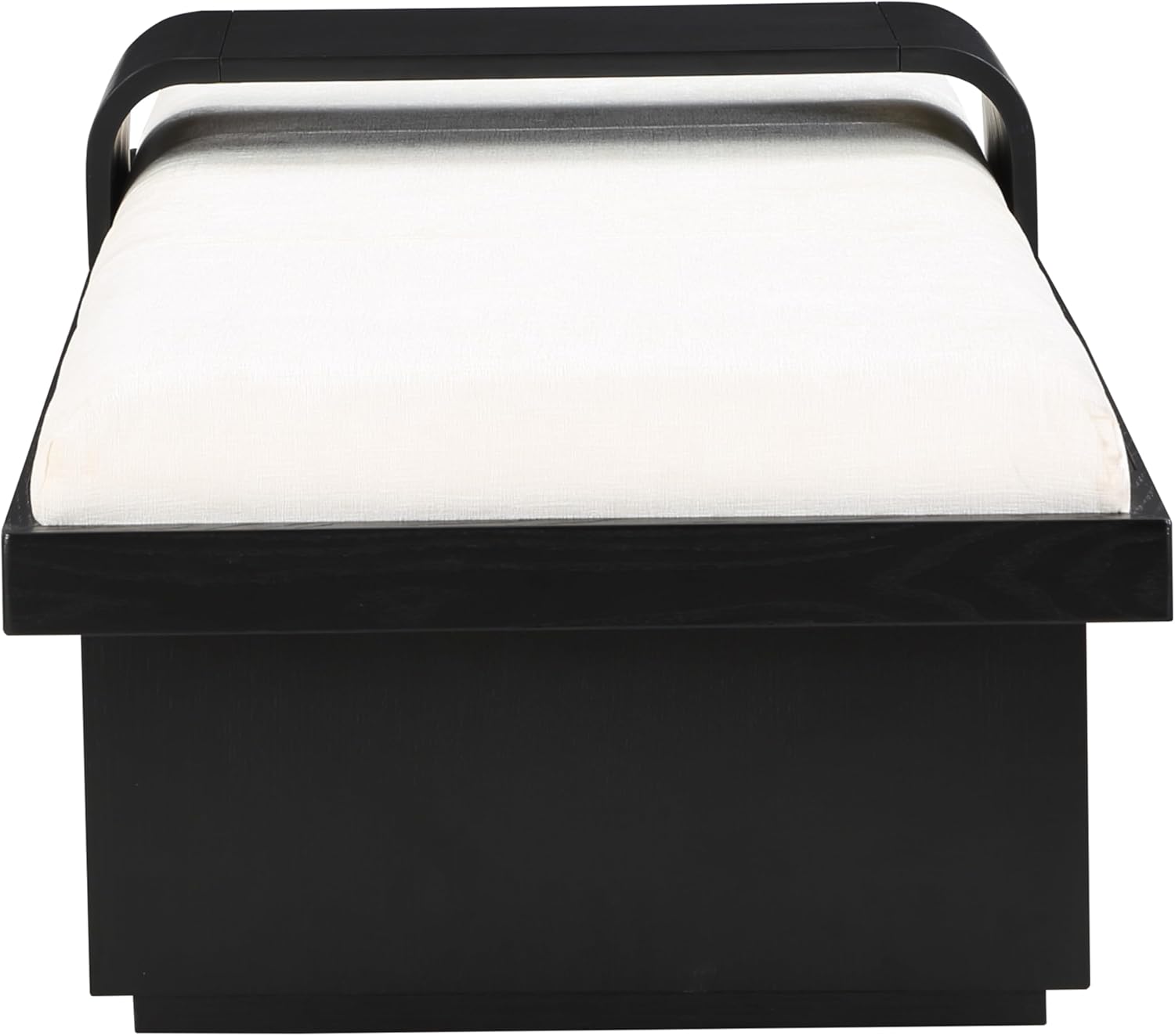 Bring home this versatile cream Arlington chenille fabric bench, a fusion of comfort and functionality and form meets function. Upholstered in soft cream chenille fabric that feels great against the skin and is easy to care for, this cozy, luxurious bench has a solid wood base with a rich black finish for sturdiness, durability, and timeless appeal. A moveable sliding wooden tray on this mid-century modern bench offers both convenience and versatility for your space.