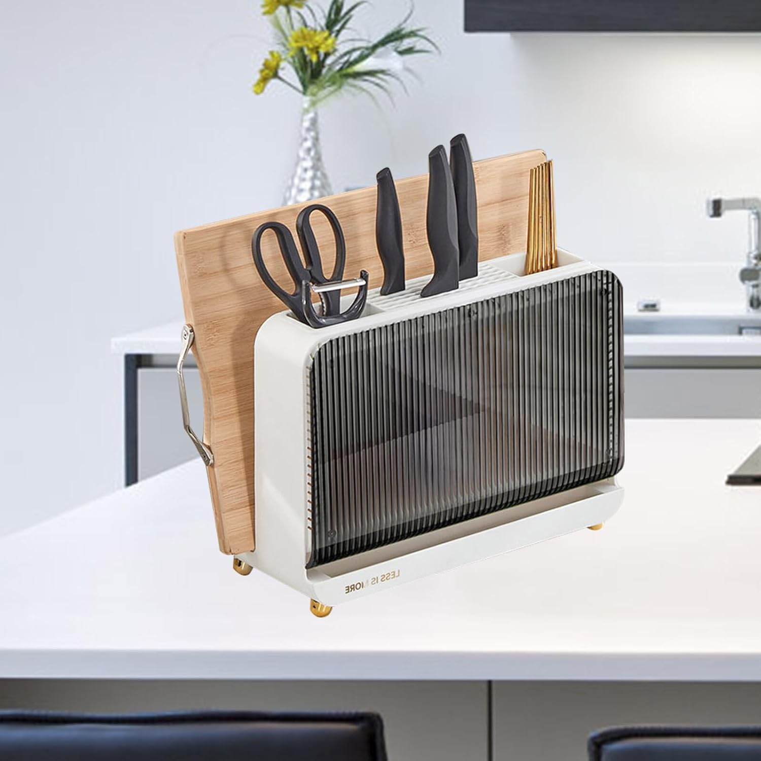 Package Include 1 × kitchen cutter organizer Features - Color: White -Material:Plastic -Product Info:Knife holder cutting board stand - Size: 33.20X25.00X15.00cm/13.05X9.82X5.89in -With the draining design, it is easily discharge water, so that the utensil is no longer wet chopstick holders. -Very practical and beautiful, for your kitchen rack to add luxury and noble temperament kitchenware organizer. -Suitable for storing chopsticks and keeping cooking utensils tidy on the workbench. Very suitable for storing spoons, forks, cutter, cutter board, chopsticks, silverware or other small utensils kitchen utensils cutlery holder. -Made of plastic material, for use. In a stylish style, it can easily fit into any kitchen. Let you have a clean kitchen. -Chopstick Holder has a stylish and simple appearance and does not take up too much space chopsticks utensil cutlery stand.Goods Informationtable chopstick holder With beautiful appearance, it will its popularity and practicability.cutlery holder for kitchen Kitchen Countertop Silverware, Chopping Board and Cutter Holder, which is made of plastic material for and practical use.household chopstick rack multifunctional chopstick Suitable for storage of spoons and other cutlery.countertop utensil holder Convenient storage design, surface, beautiful and practical