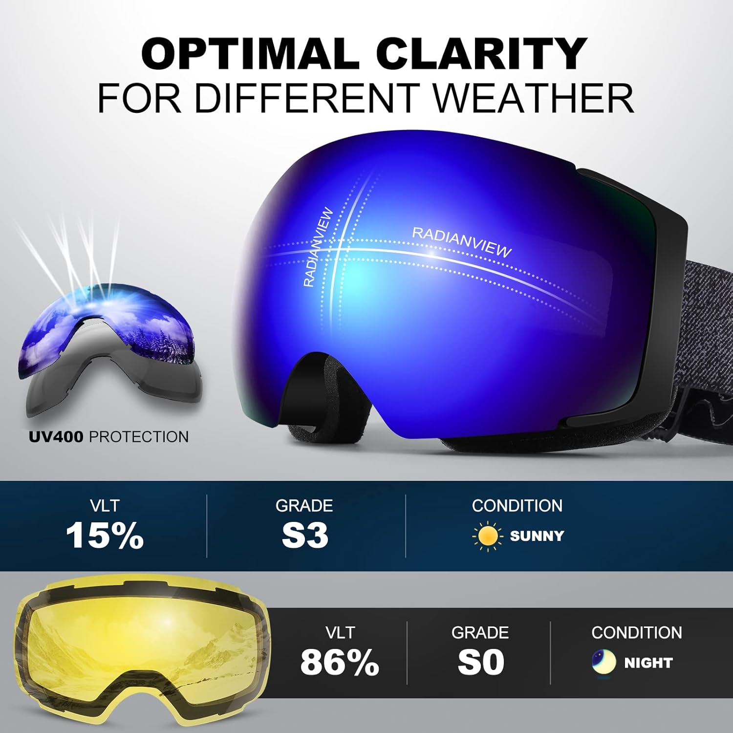 Package includes: 1 pair Snow Shoes, 1 pair Trekking Poles, 1 pair Leg Gaiters, 1 x Carry Bag, 1 x Ski Goggles, 1 x Detachable Lens