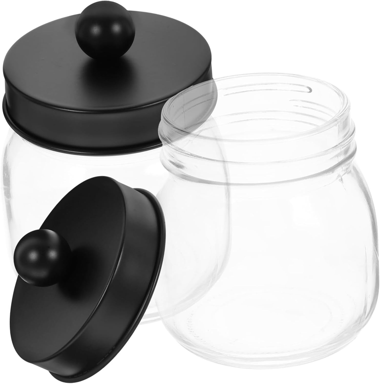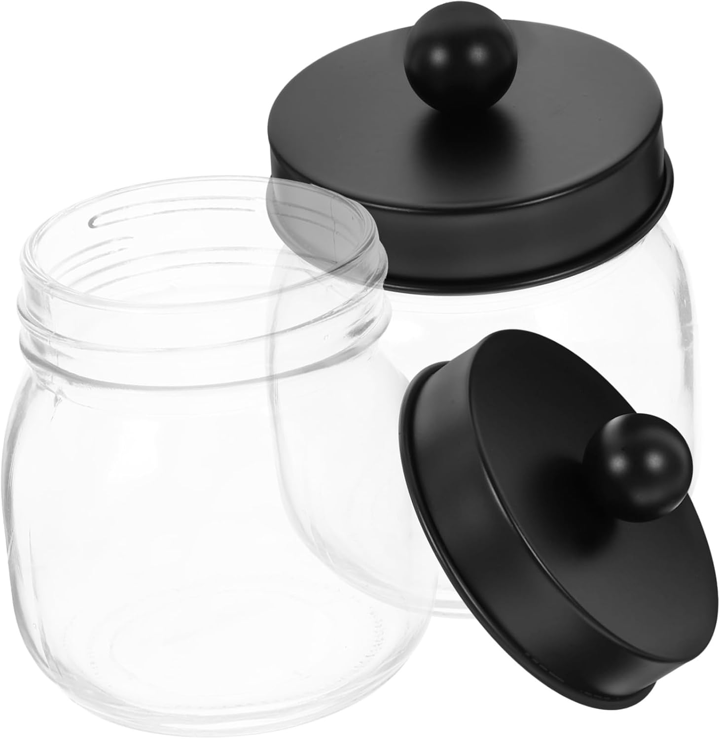 Package Include 4 x cotton ball jars Features -Size:10.80X7.10X7.10cm/4.24X2.79X2.79in cotton pads holder -Color:Black Cotton Swab Holder -Material:Stainless steel, glass bathroom jars with lids - size for organizing your items without taking up too much space, cotton pad dispenser. -Simple structure makes the storage holder an elegant decoration for dressers and a great present for friends Cotton Ball Glass Jar. -Our delicate storage box will help keep your bathroom neat and tidy, you can use it with confidence Cotton Pad Organizers. - lid, which is easy to open and close, convenient to refill items lovely swab dispenser. -Keeps cotton pads and swab clean, neatly stacked and designed to be transparent, which is visible for you to check the items inside bathroom storage jars.Goods Informationjars for bathroom storage This is a simple storage box, made of stainless steel, glass material, it is and .Clear Cotton Ball Holder You can clean it easily.decorative toothpick dispenser Suitable for cosmetic swab, toothpick, swab etc.creative toothpick holder Creative design with detail makes it attractive, a decoration for your home or store etc