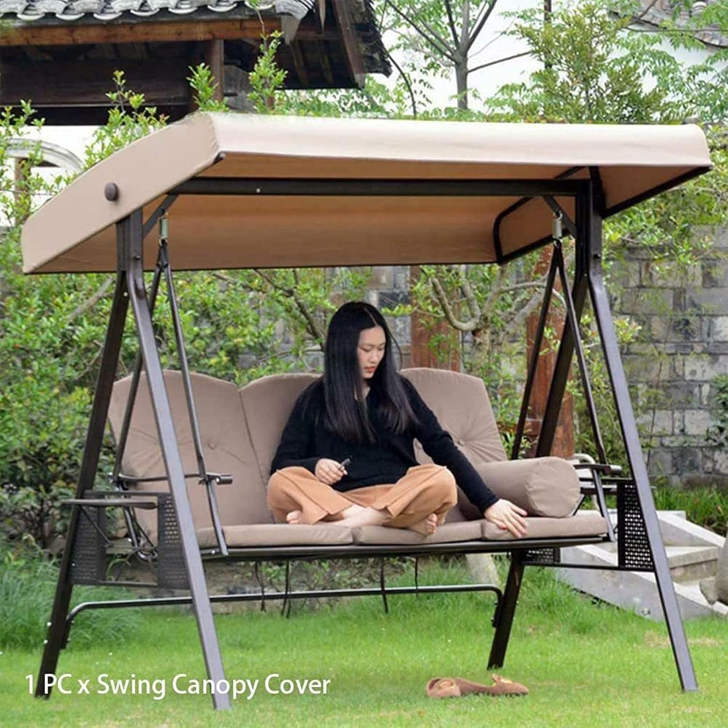 Replacement Canopy Top Cover,Waterproof Patio Swing Canopy Cover Swing Seat Cover Replacement Anti Dust Protector UV Block Sun Shade Patio Swing Hammock Roof★ Specifications:Material: 190T waterproof silver coated polyester taffetaColor: Black, Beige, Green, GraySize: 191x20x23cm★ Description:- Swing cover set for 3 seater swing, easy and convenient to install and use.- Protect the swing top and seat from dirt and scratches, sunlight.- Made of high quality 190T oxford fabric, waterproof and dustproof.- Effective blocking of harmful UV and water repellent.- Perfect replacement for your old worn out swing canopy and swing seat cover.- The swing top is suitable for places of reading, picnic, outdoor patio room, yard, etc.- Easy to clean, easy to store.★ Note:1. Due to the light and screen difference, the item's color may be slightly different from the pictures.2. Please allow 0.5-2 cm differences due to manual measurement.★ The package includes:1×Swing Canopy Cover