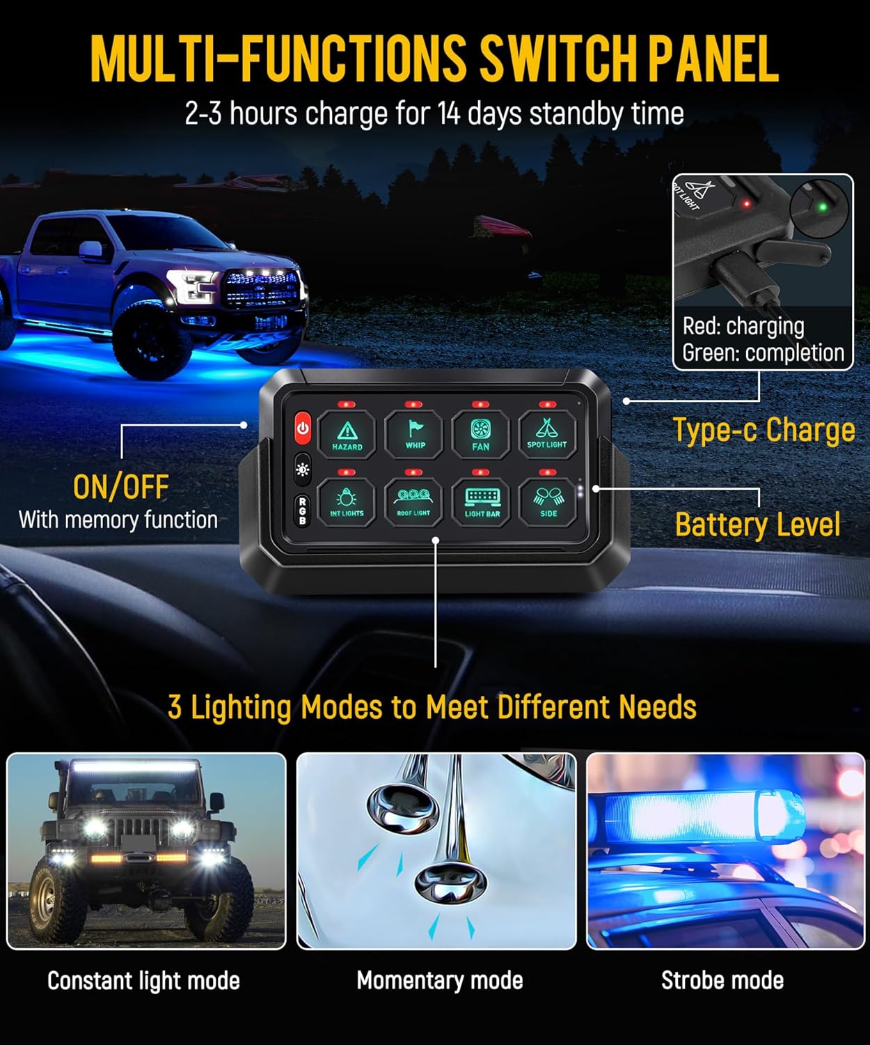 Partsam RED Oval Tail Lights+Wireless RGB 8 Gang Switch Panel