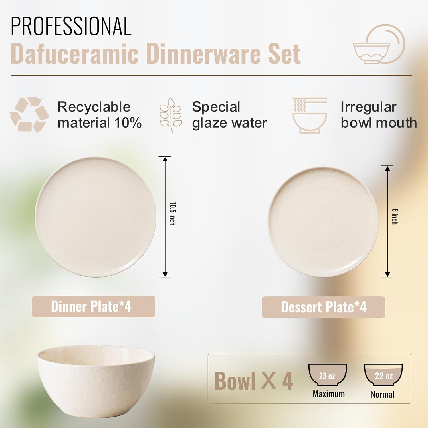 | Included Components | 4 Cereal bowls, 4 Dinner plates, 4 Salad plates |