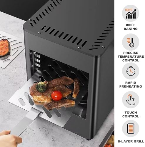 Introducing our Portable Countertop Steak Oven, the ultimate Commercial Electric Oven for cooking enthusiasts who appreciate quality and convenience. In just 10 minutes, you can enjoy tender, restaurant-quality steaks right from your kitchen. Whether it's a lively weekend barbecue or a quick weeknight dinner, this oven is the perfect solution for effortless meal preparation. **Key Features:** - **High-Temperature Grilling:** Experience exceptional results with a temperature range of 100-800℃, ideal for searing meats to perfection. - **Rapid Preheating:** Ready to cook in only 5 minutes, making it perfect for those busy evenings when time is of the essence. - **Versatile 8-Layer Grill Design:** Cook a variety of dishes simultaneously. Utilize the first three layers for T-bones and ribeye steaks, the next three for grilled chicken and fish, and the top two for roasting vegetables and fruits. - **User-Friendly Touch Panel:** Enjoy precise cooking with 8 adjustable temperatures and a 30-minute timer, allowing you to multitask with ease. **Specifications:** - **Inner Cavity Size:** 20.1*29.8*21.2 cm - **Power:** 1700W - **Heating Temperature:** 100-800℃ - **Cooking Time:** 0-30 minutes - **Preheating Time:** 5 minutes **What’s Included:** - 1 x Steak Grill - 2 x Trays - 2 x Grills - 1 x Handle Elevate your culinary experience with our Portable Countertop Steak Oven. Perfect for grilling aficionados and anyone eager to enjoy delicious meals at home, this oven seamlessly combines convenience and quality. Discover the difference it can make in your kitchen today!