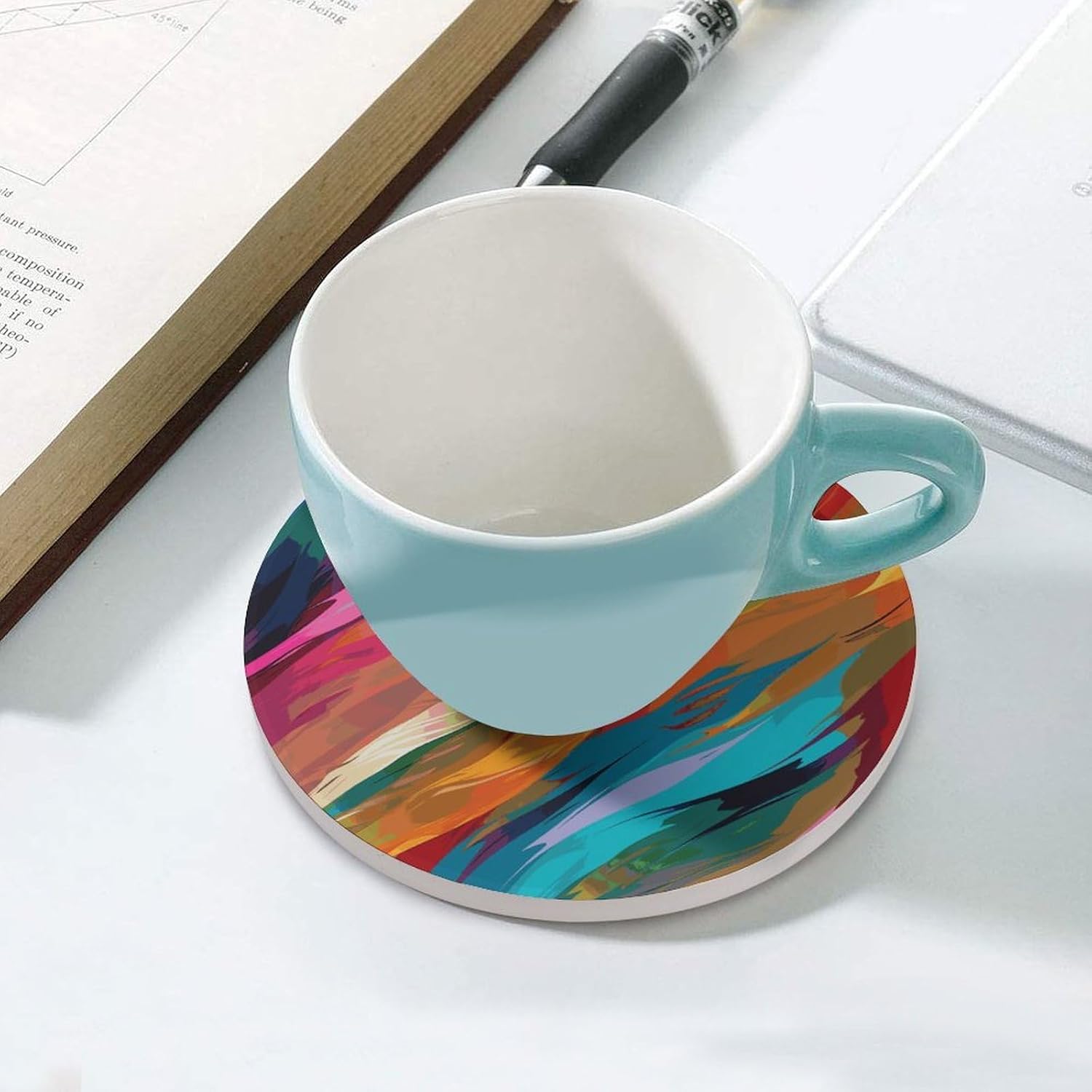 Transform your everyday drinkware experience with our Personality Round Mug Mat set, designed to blend functionality with eye-catching style. Whether you're sipping morning coffee, afternoon tea, or a relaxing evening drink, these Drink Coasters for Drinks offer the perfect balance of protection and aesthetics. The ceramic surface handles hot and cold beverages alike, while the cork backing ensures your favorite tables and countertops stay free from scratches, rings, and moisture. Available in 4PCS or 6PCS packs, these coasters are tailored to fit your daily use, whether for personal use or entertaining guests.Say goodbye to messy spills and slippery cups with our Waterproof Coasters and Anti-slip Drink Cup Mat combination. The smooth ceramic top is not only easy to wipe clean but also resists water absorption, ensuring spills don’t leave lasting marks. At 4.1 inches in diameter, each Round Ceramic Drink Coaster is sized to fit most standard mugs, glasses, and cups, making it a versatile addition to any home or office. Whether you're hosting a casual gathering or setting up a cozy workspace, these coasters keep your surfaces protected while adding a subtle, stylish touch to your decor.Elevate your space with our Fashion Coasters that double as charming coffee table decor. These Cute Drink Coasters feature a sleek round design that complements any interior style,Perfect for your kitchen, living room, bedroom, office, or bar, they make a thoughtful gift for friends, family, or colleagues who appreciate both practicality and style. Don’t settle for basic coasters—upgrade to our Heat Insulation Round Cup Mat set and enjoy a cleaner, more organized, and aesthetically pleasing environment with every sip.