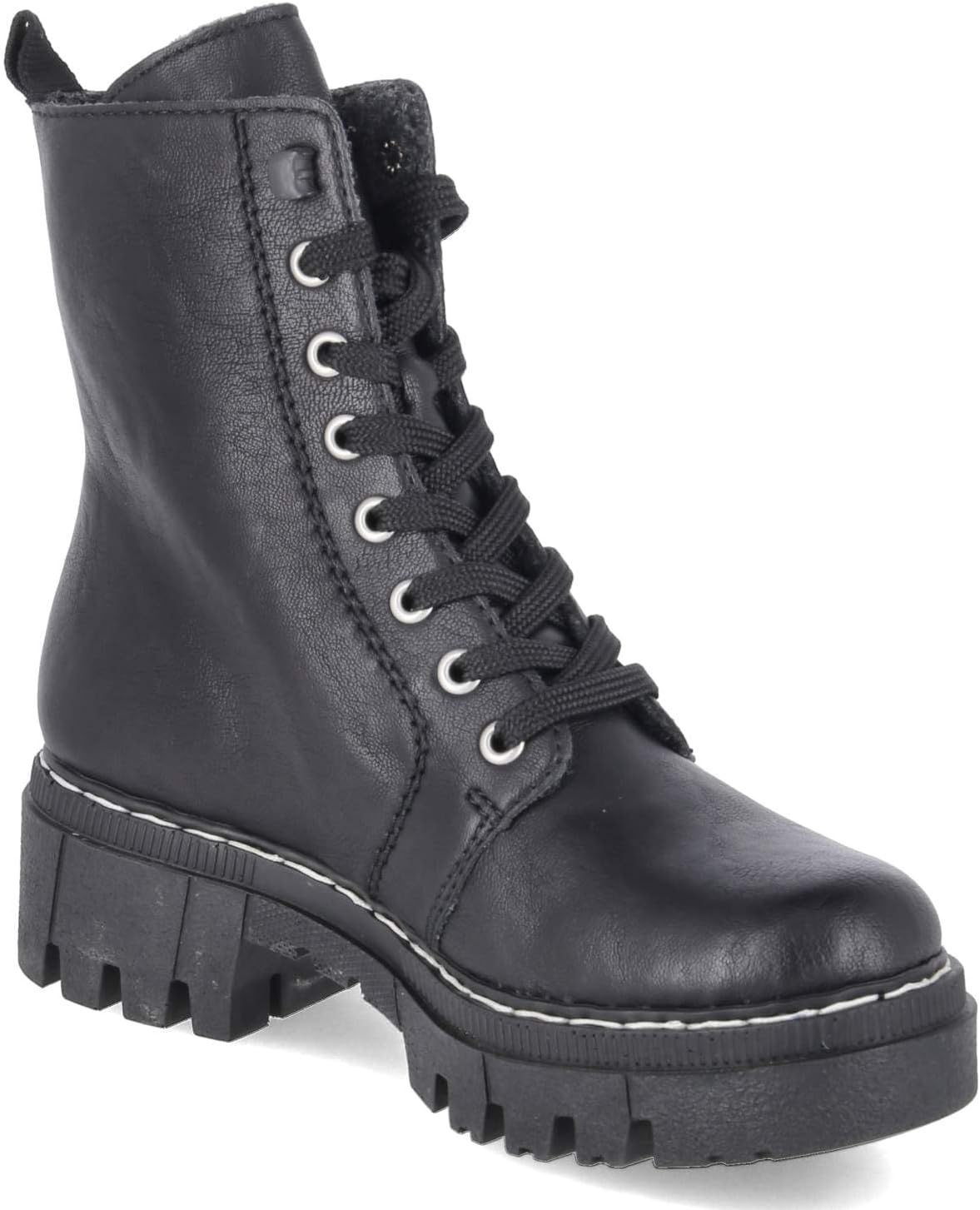 Attention, favourite shoe potential. With this black Rieker biker boot, you are always well dressed and can rely on maximum comfort. Made in the stitching style, the model is robust, flexible and offers a perfect fit. The lacing is complemented by a zip and thus guarantees optimal hold and a perfect fit. The lightweight and shock-absorbing platform sole ensures a comfortable fit. In addition, the extra soft insole ensures an extra dose of comfort. Fashionable well-being in the style of Rieker!