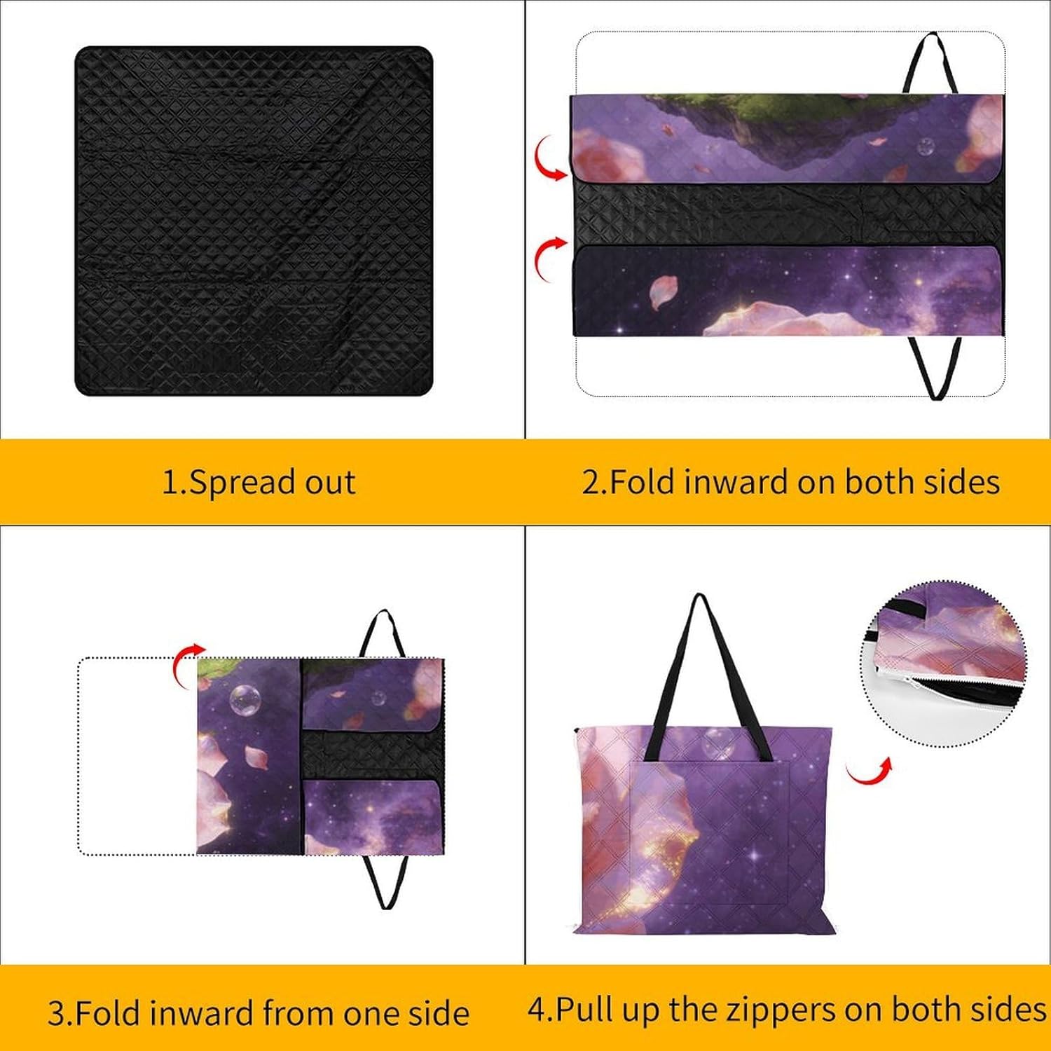 The picnic blanket ,we've only used the highest quality materials, so every picnic is an experience .The underside lining is very sturdy and therefore suitable for every surface. No more worrying about dirty or wet bottoms when you are sitting on damp grass. The Rose World blanket protects you from water, dust and dirt.A large capacity bag and a picnic blanket, 2in1. It has a large capacity and one bag can hold everything you need for going out. You choose the place you want to lie down, and this bag can be turned into a comfortable picnic blanket in seconds also it can fold into tote bag, which is waterproof, sand-proof and wear-resistant.Therefor,you can take it to nearby parks, campuses, beaches or lawn, anywhere you want to lie down.
