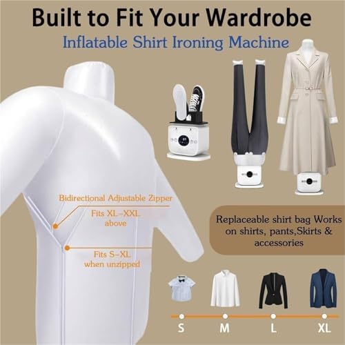 Experience effortless wrinkle removal with our innovative automatic ironing machine, designed to simplify your laundry routine. This portable hot air drying iron is perfect for shirts and trousers, making it an essential addition to your home. With a rapid ironing time of just 8 minutes, it saves you valuable time compared to traditional steam and electric irons. Our ironing machine utilizes advanced technology to provide hands-free wrinkle removal, ensuring that your clothes look crisp and polished without the hassle of manual ironing. Ideal for busy professionals, parents, or anyone who values efficiency, this machine makes it easy to maintain a neat appearance, whether you're getting ready for work or prepping for a special event. The automatic ironing machine is versatile, accommodating various clothing types and sizes. Its compact design allows for easy storage, making it a practical choice for small spaces. With a power rating of 110V-1250W or 220V-1400W, it delivers consistent performance, while the 0.8 m power cord provides ample reach for your ironing needs. Included in the package are essential accessories such as a clothes model, trousers model, shoe rack, and optional skirt model, ensuring you have the right tools for every garment. Plus, the clothes drying cover adds extra functionality, allowing you to dry your clothes quickly and effectively. Whether you’re at home or on the go, our automatic ironing machine is your reliable solution for achieving wrinkle-free clothing effortlessly. Invest in your wardrobe and elevate your everyday routine with this must-have appliance.