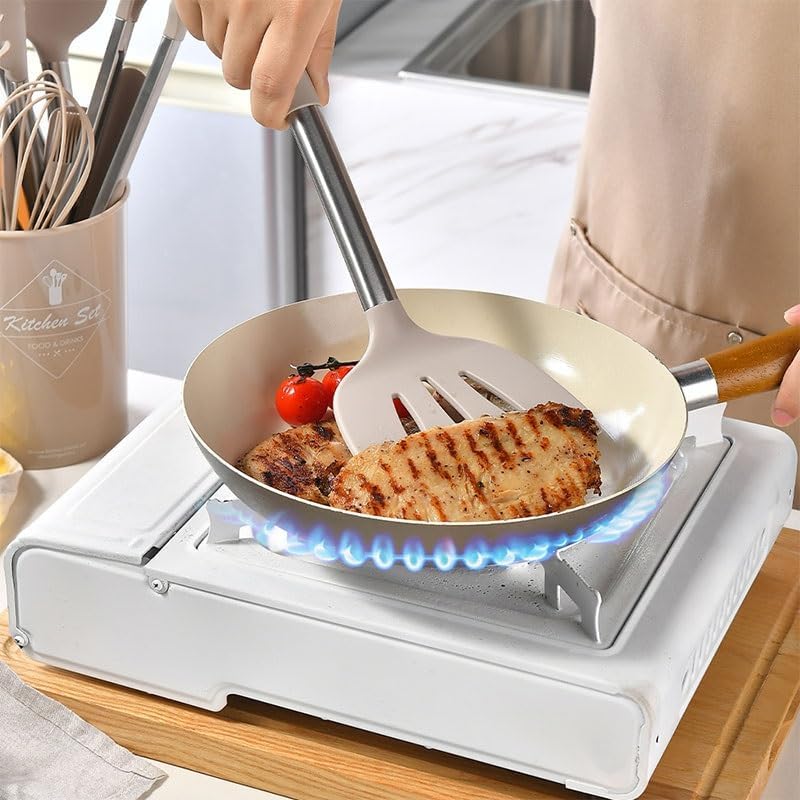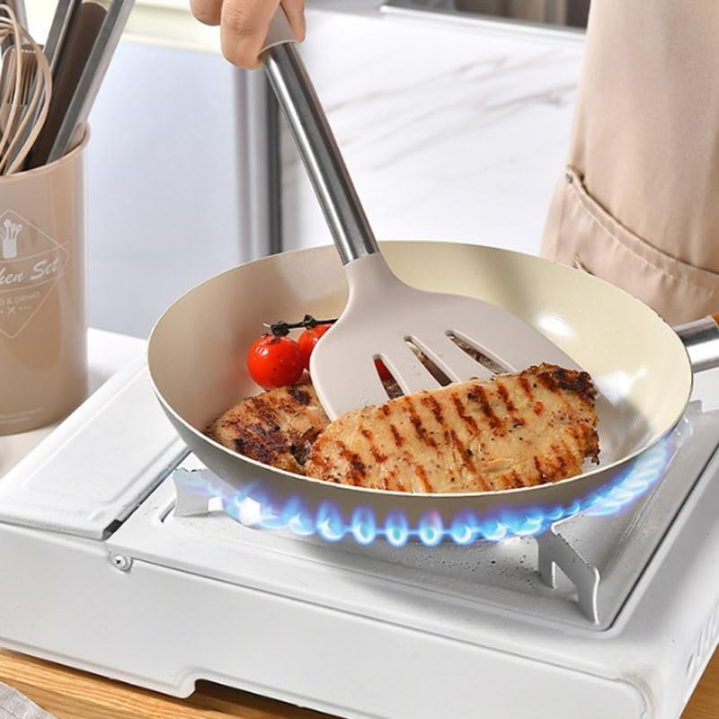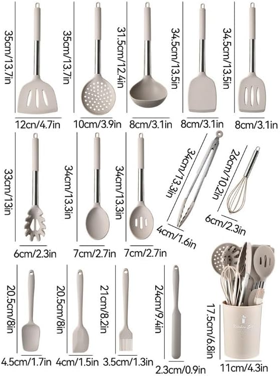 `: Spoon and Spatula SetMaterial: Silicone Size: As shownColor: As shownFunctions: Cooking, baking.The set includes: Soup spoons, stir-frying spatulas, large strainers, oil brushes, etcShoulder bag: Shovel and spoon set * 1 set (excluding display items)Attention:1. Please allow 1-2cm error due to manual measurement. Thank you.2. The actual color of the product may be slightly different from the image shown. Please refer to the actual product.Investing in a handy set of spatulas can significantly enhance the smoothness and enjoyment of cooking.