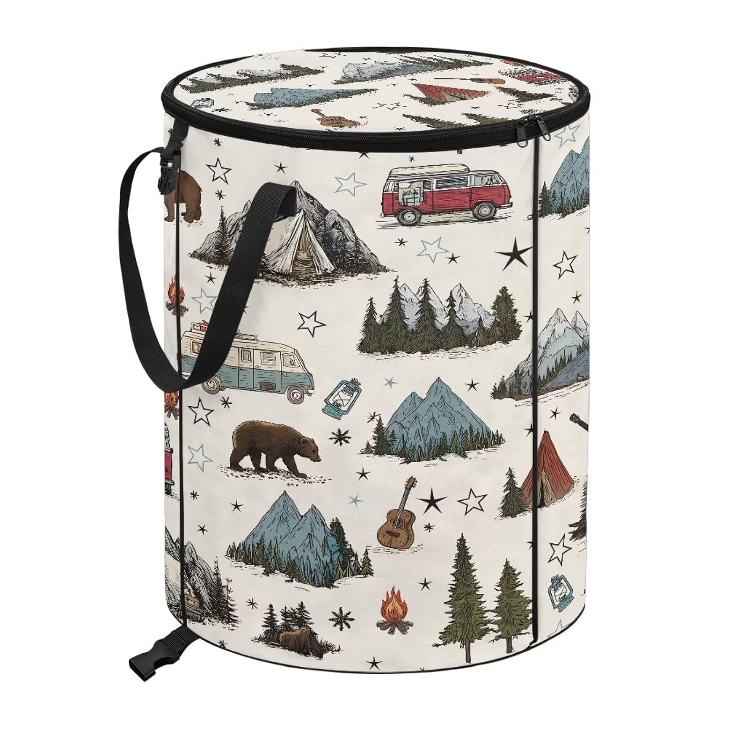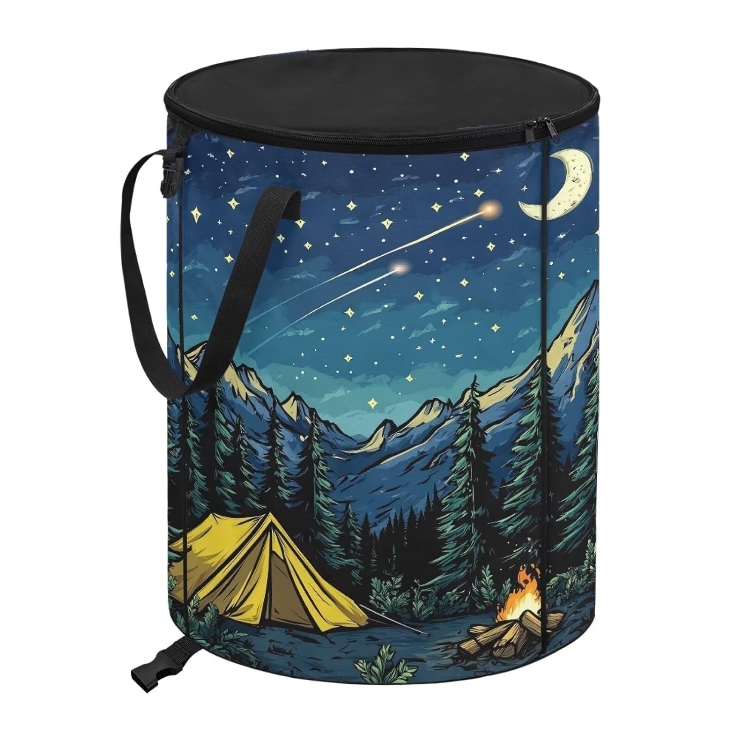 Outdoor Foldable Trash Can Key Features: -Material: Waterproof polyester -Size: 17.72"" x 22.83"", with a generous 25-gallon capacity -Multi-Functional Use: This trash can adapts to your needs; use it for waste disposal, laundry, storage, or as a convenient waste bin on RV trips and camping adventures. -Smart Storage Solutions: The foldable feature allows for easy storage when not in use. Plus, the zippered lid helps keep odors contained, ensuring a fresh environment. -Perfect for camping, picnics, or everyday use. Our Outdoor Foldable Trash Can is the ultimate solution for anyone looking to maintain cleanliness and organization in their outdoor or indoor spaces. Durable, stylish, and versatile, it's perfect for all your waste management needs. Get yours today and experience the convenience of efficient waste disposal!