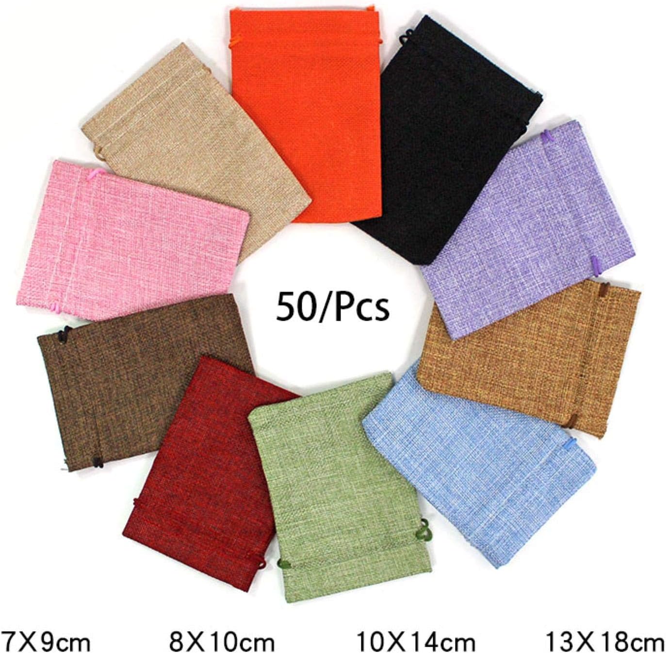 SUNULAN Drawstring Gift Bags,50 Pcs/Lot Drawstring Natural Burlap Jute Gift Bags Multi Size Jewelry Packaging Wedding Candy Pouch-Brown Coffee-9,10 * 14 cm(Black 19,13 * 18 cm)