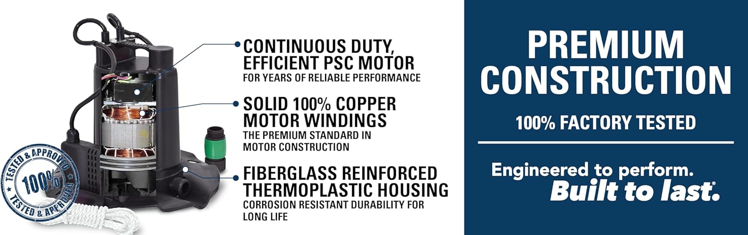 Superior Pump 92392 1/4 HP Automatic Pool Cover Pump, Capacity of up to 1380 GPH. Superior Pump builds pumps that are truly Built to Last and are 100 percent factory tested. Superior Pump uses quality components including solid copper motor windings, heavy duty stainless steel jacketed shaft seals, double o-ring seals on motor plate, and electronically controlled split capacitors.